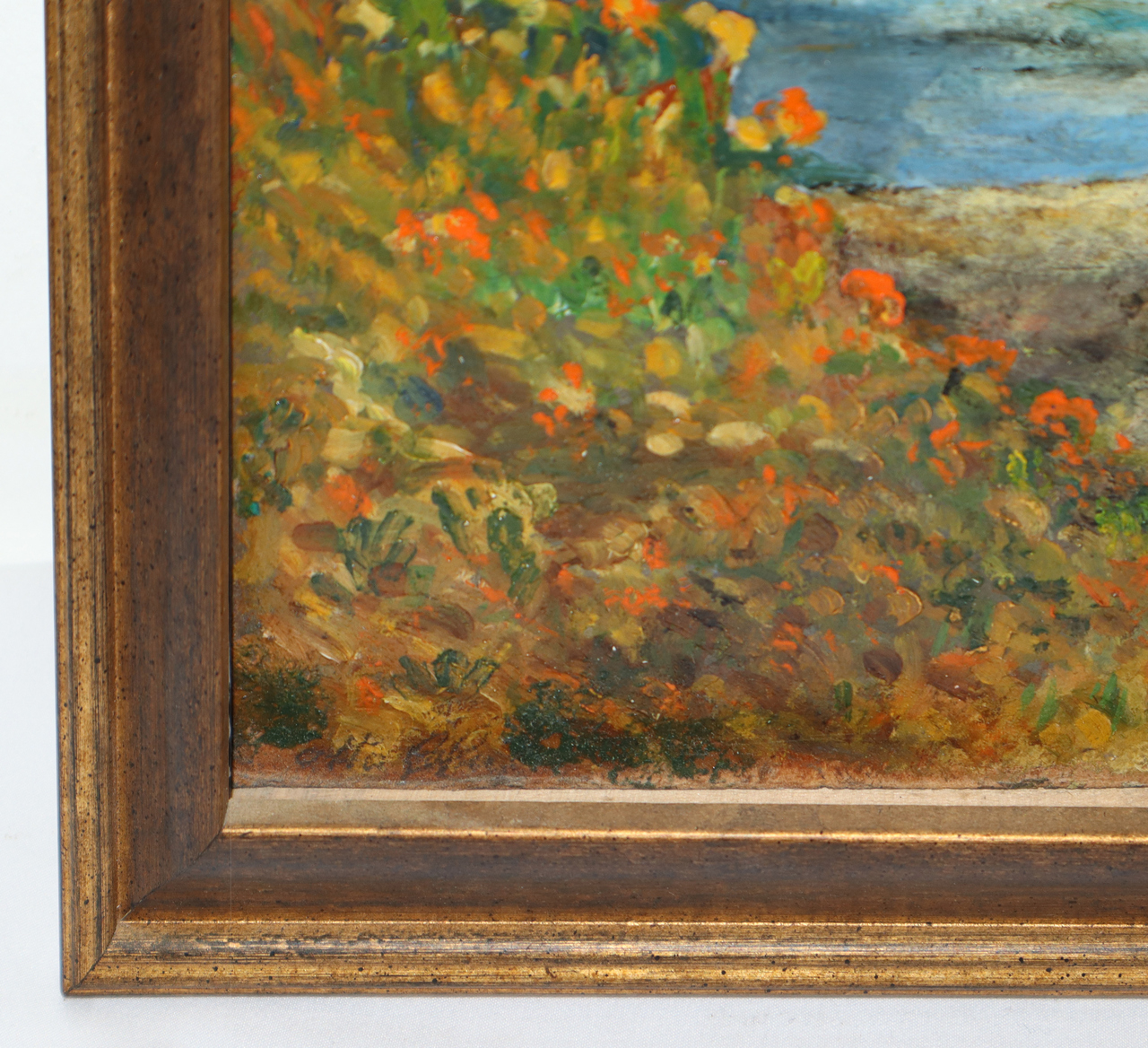 Otto Geleng (Berlino 1843 - Taormina 1939) - Veduta di Isola Bella da Capo Taormina h cm 34,4X40,5 in cornice h cm 40X55 olio su faesite