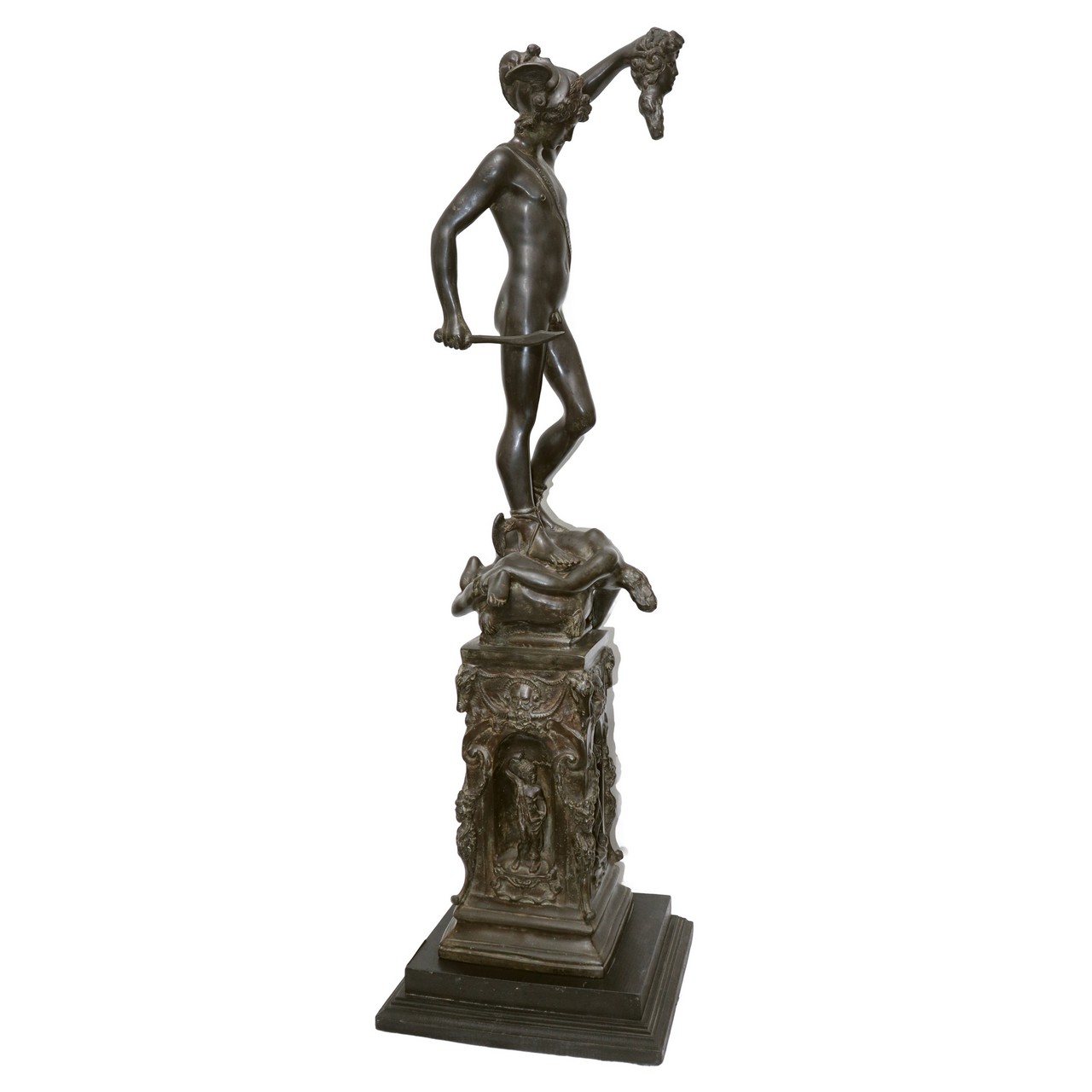 Perseo, scultura in bronzo da Benvenuto Cellini h cm 107X28X31 misura senza base h cm 100,5 Scultura in bronzo con base in legno