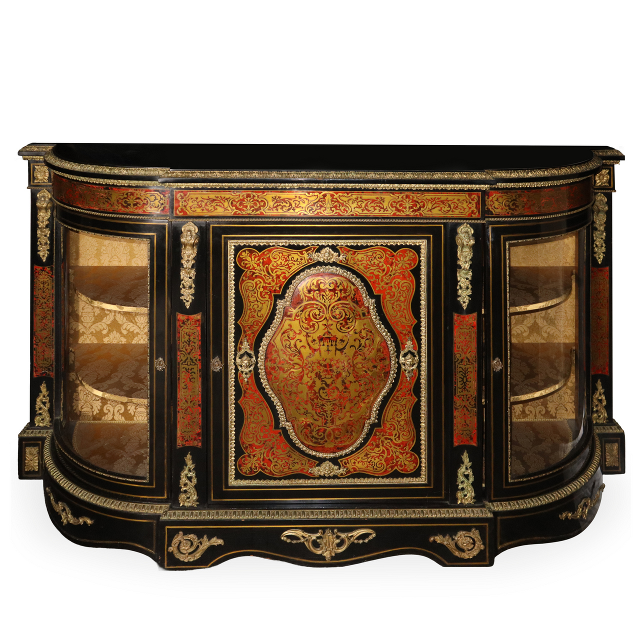Etagere boulle con sportello centrale e vetrine laterali, 19° secolo