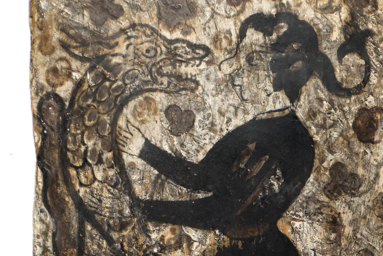 Lotto 119 | Placca Socarrat Valenziano in argilla cotta raffigurante Uomo con grifone