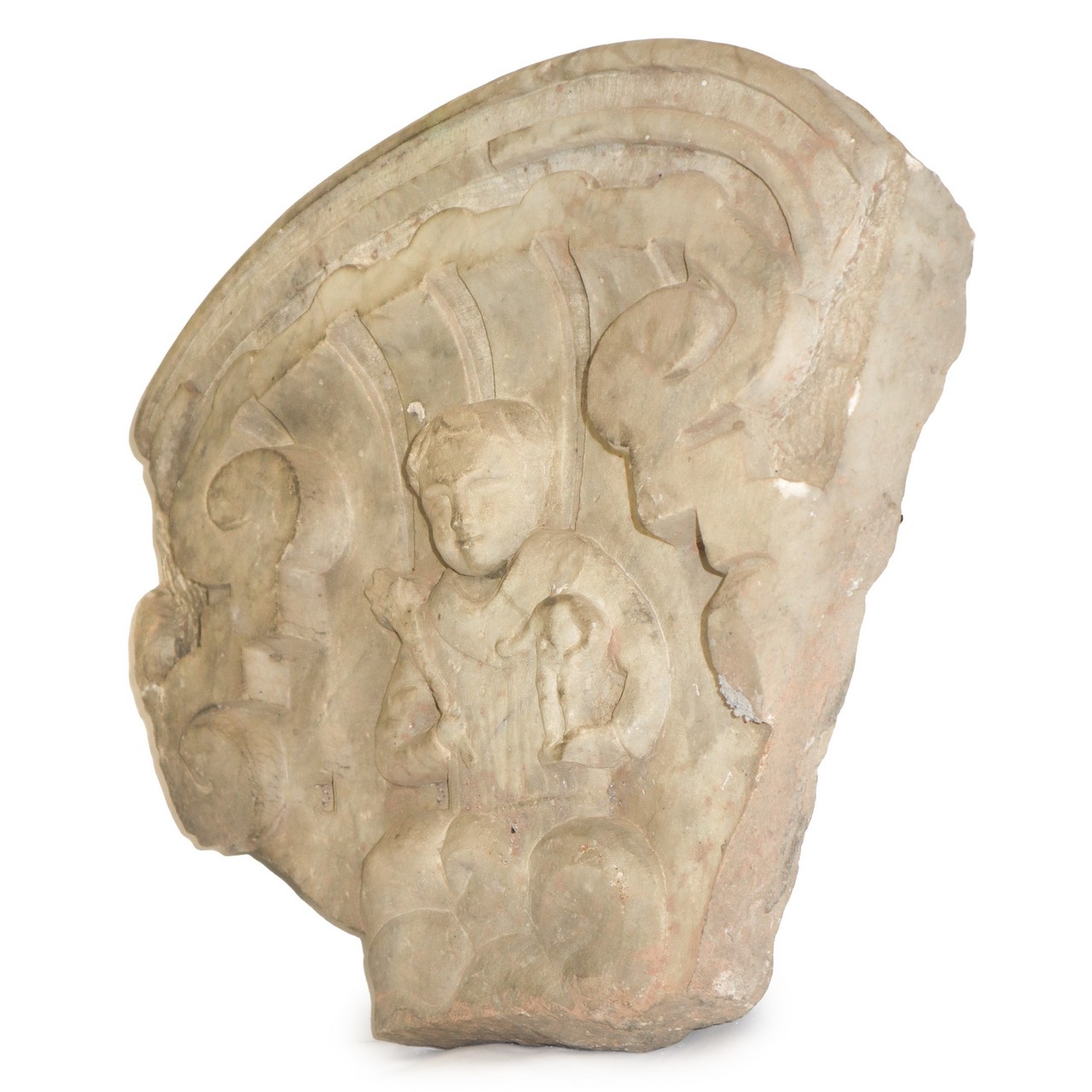 Frammento in marmo bianco con putto, 17° secolo