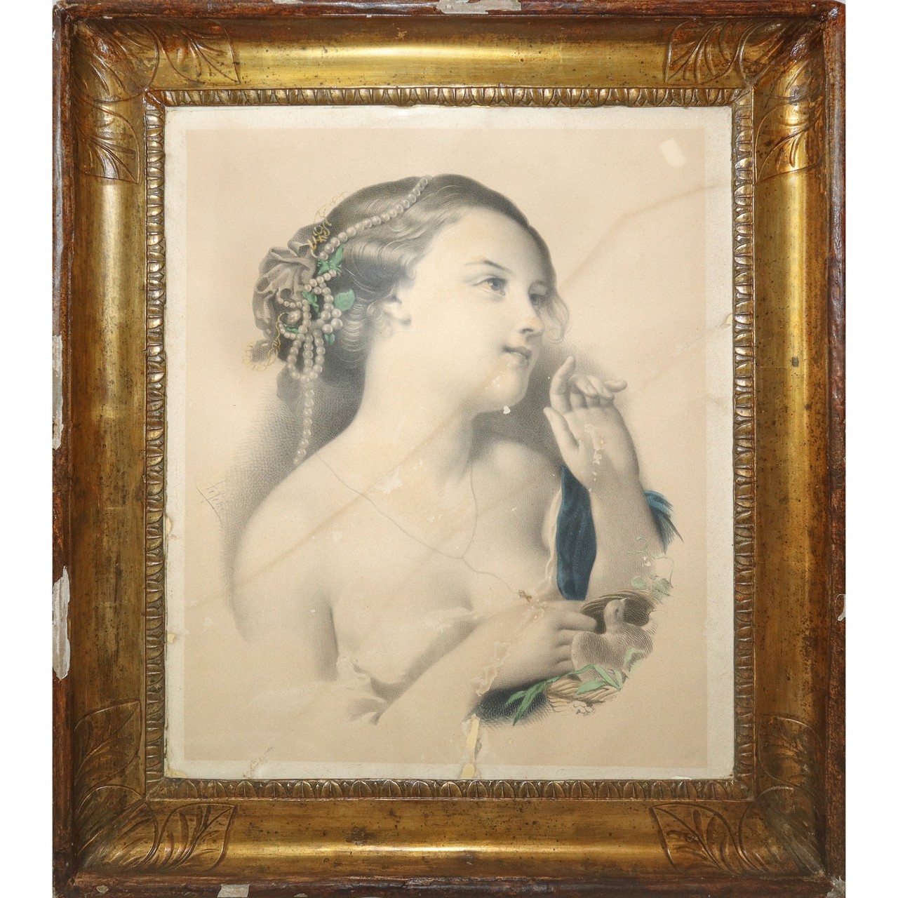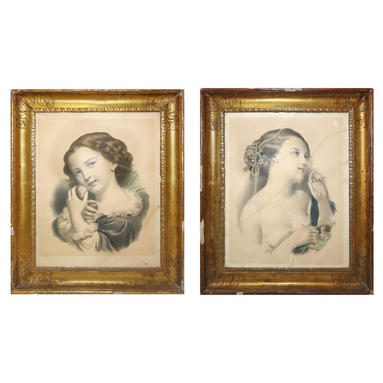 COPPIA DI CORNICI IMPERO DORATE ARGENTO E MISTURA CON STAMPE, Sicily, primi 19° secolo