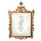 Specchiera veneziana in cornice dorata a foglia con specchio al mercurio bulinato con personaggio carnascialesco al centro, Venice 18° secolo h cm 72X60 incollatura alla cimasa