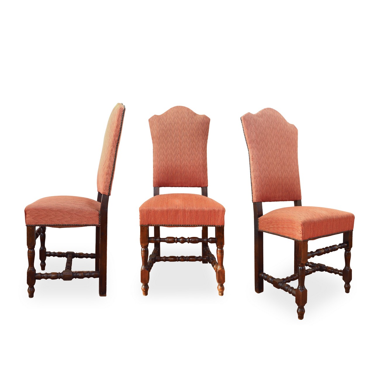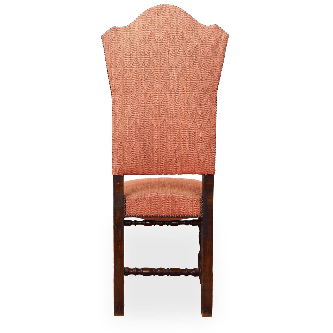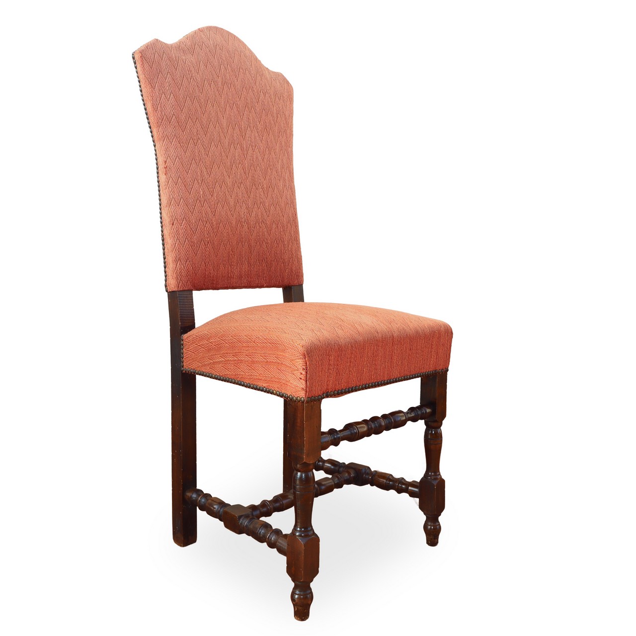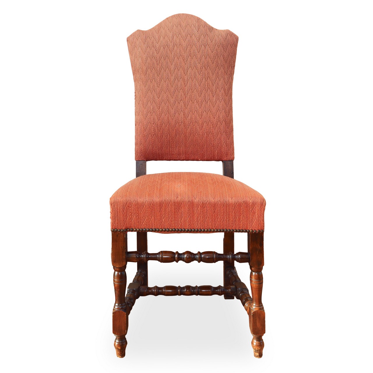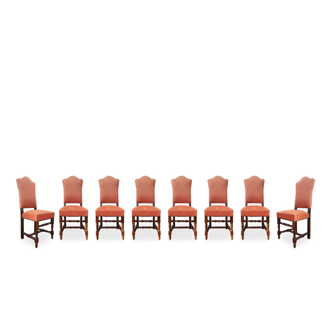 N°8 Seggioloni Luigi XIV con piedi a rocchetto e spalliera sagomata e tappezzeria rossa