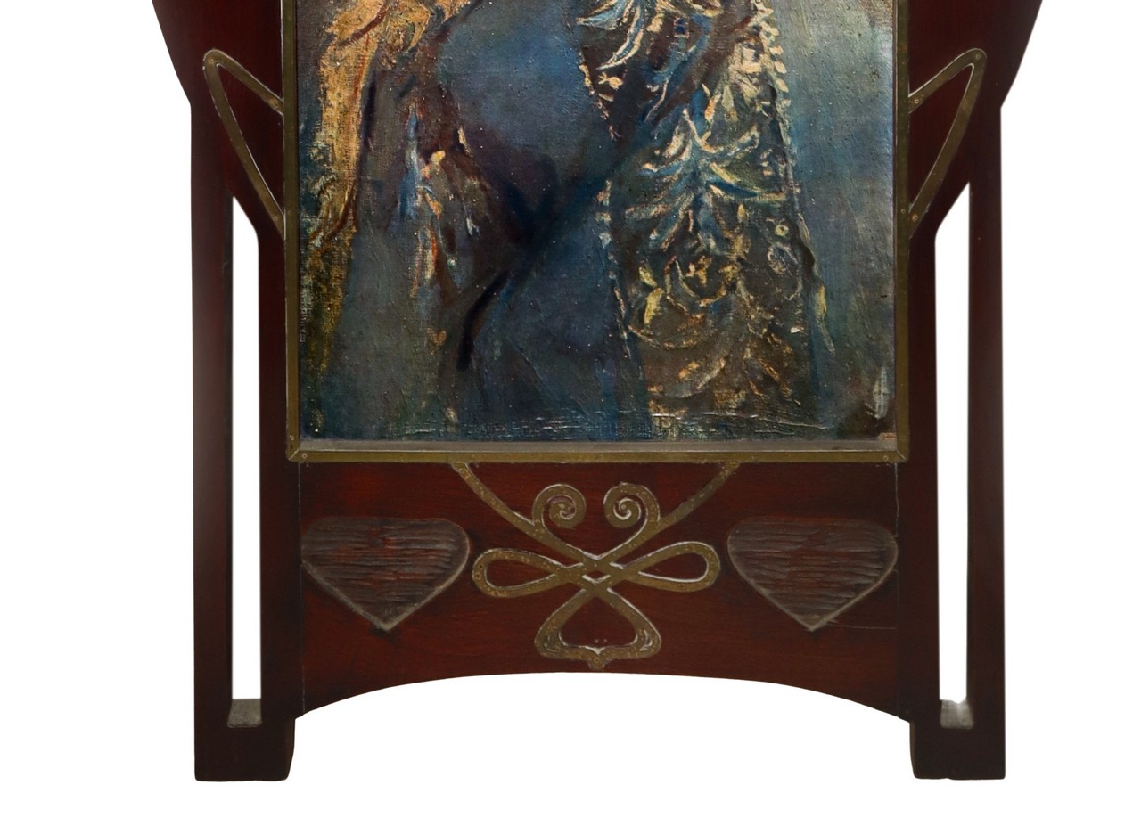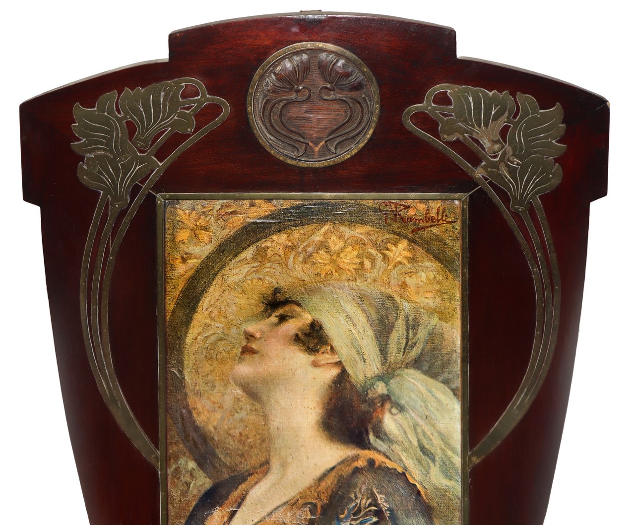 Giuseppe Rambelli (Bagnacavallo 1868 - 1954) - Stampa di donna in Cornice liberty in legno con intarsi in metallo dorato (stampa h cm 75X37) cornice h cm 118X73 Stampa Firmata in alto a destra da un'opera di Francisco Aurélio de Figueiredo