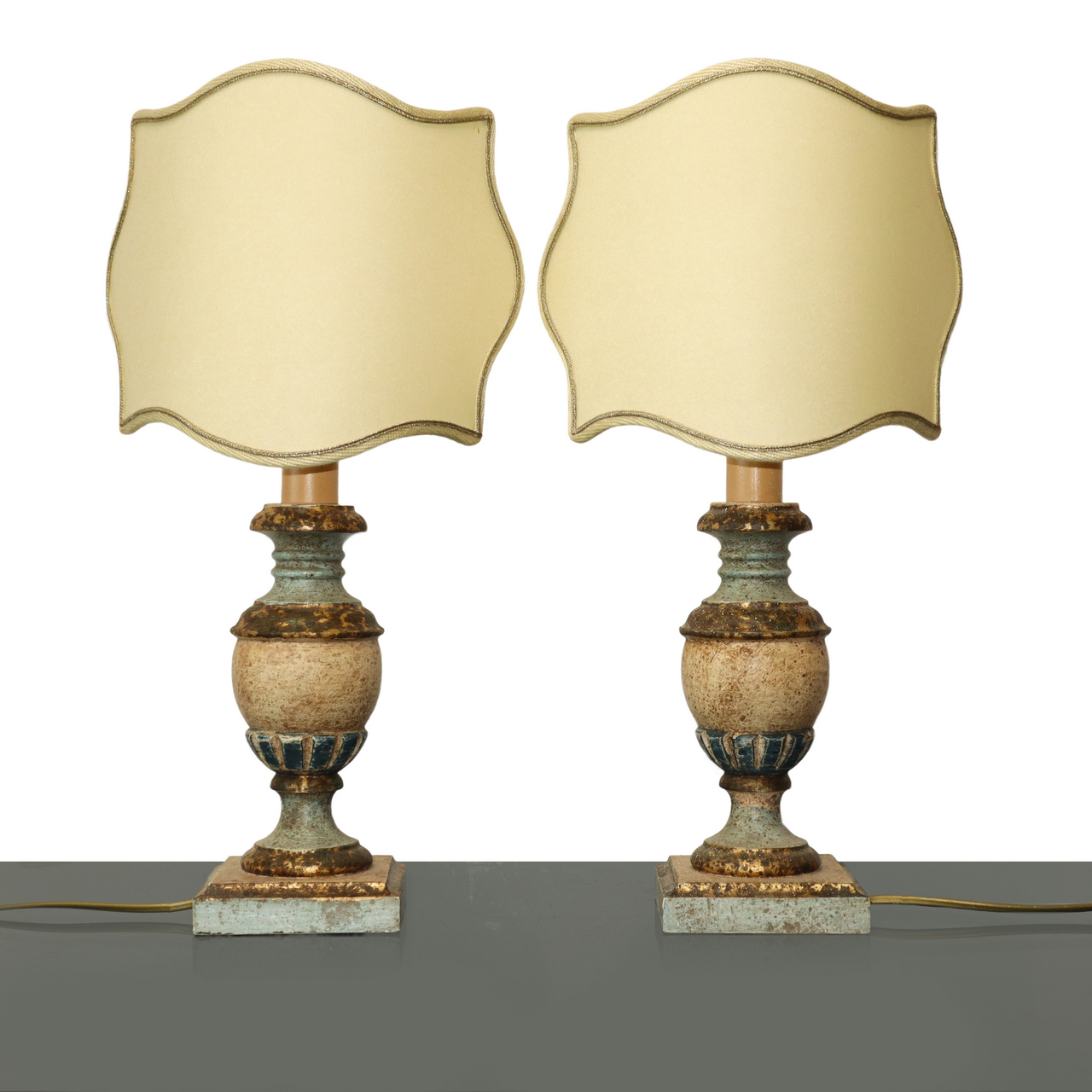 Portapalme in legno laccato e dorato adattate ad abat-jour, Sicily 19° secolo