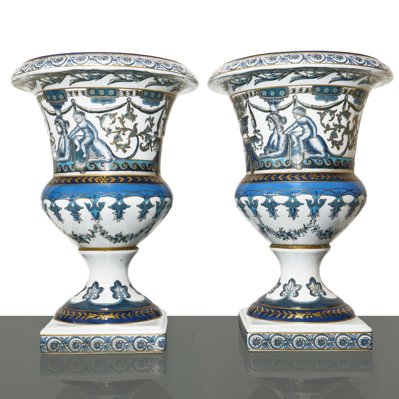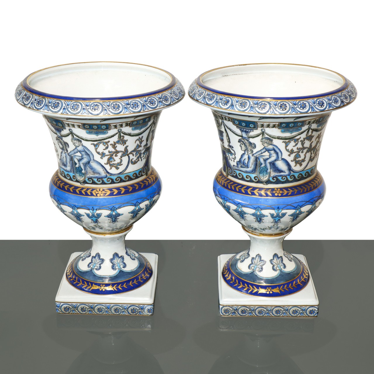Capodimonte - Coppia di vasi di Capodimonte decorati a motivi neorinascimentali, 20° centuries