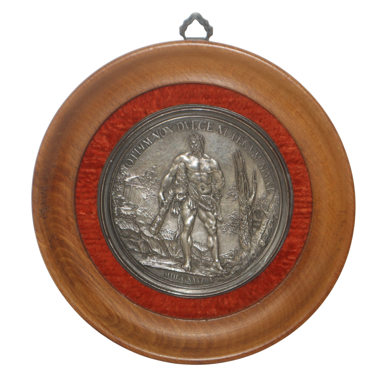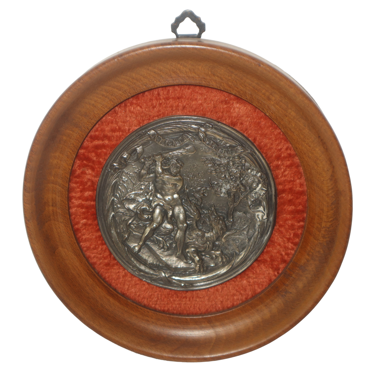 Lotto 203 | N°3 Placche rotonde in argento 925 entro cornice in legno con scene raffigurante Ercole