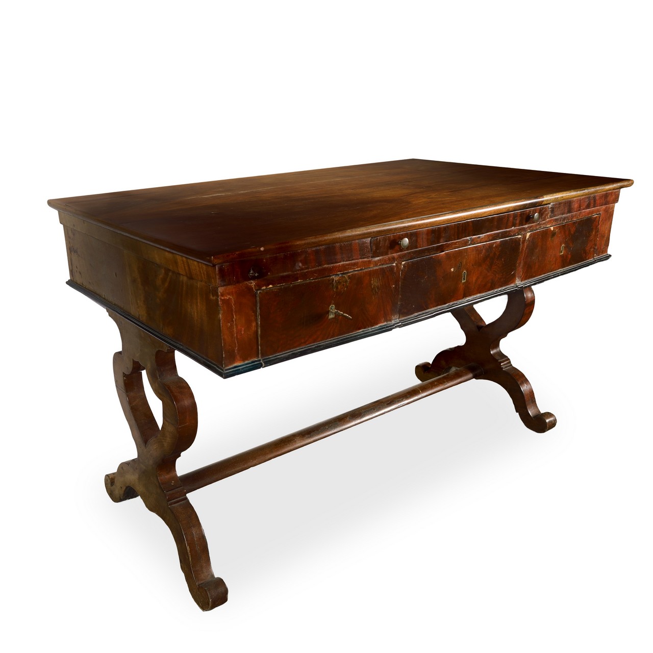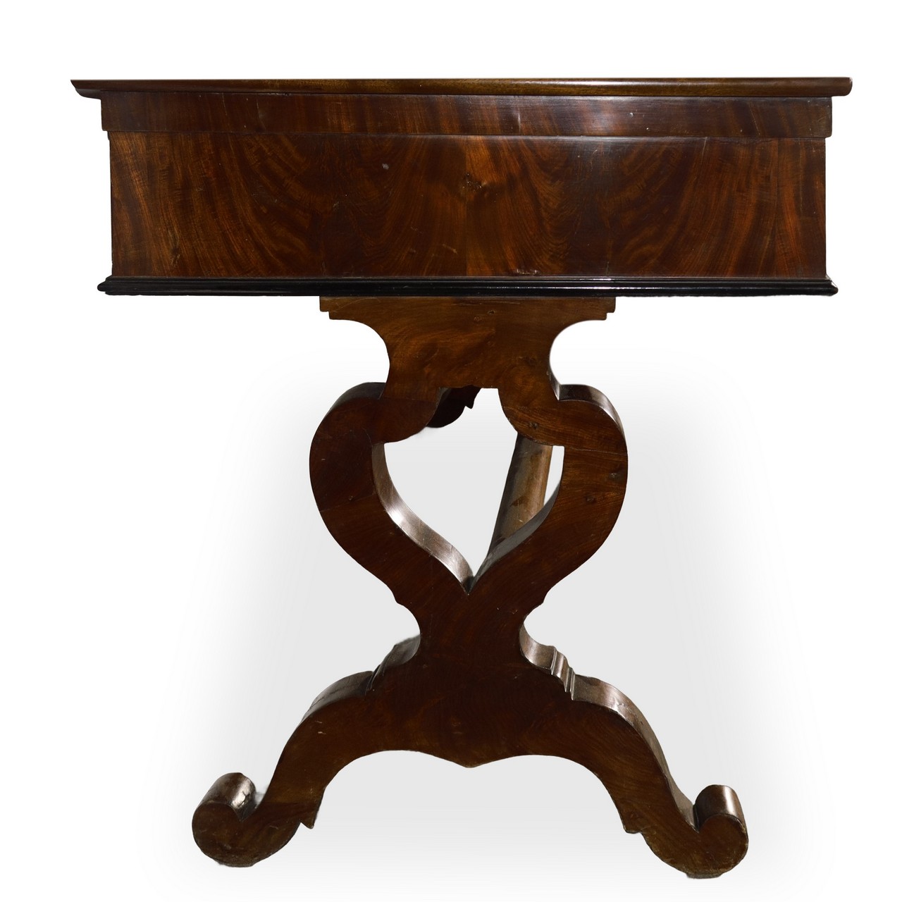 Scrittoio piedi a lira con cassetto e tiretto, 19° secolo H cm 81 x 132 x 77
