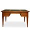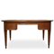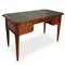 Scrivania in legno di noce chiaro, piano rivestito in pelle, cassetto centrale e cassetti laterali, piedi troncopiraMetàali , primi 20° secolo