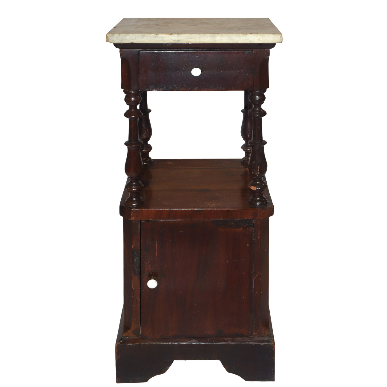 Lotto 240 | Comodino con marmo al piano con colonne tornite al sottopiano e sportello alla base , 19° secolo