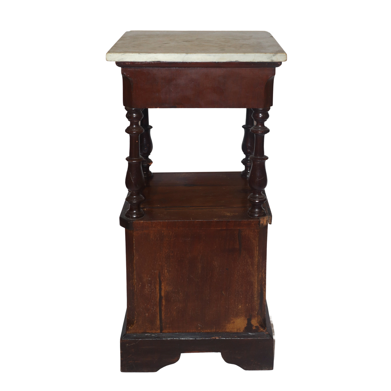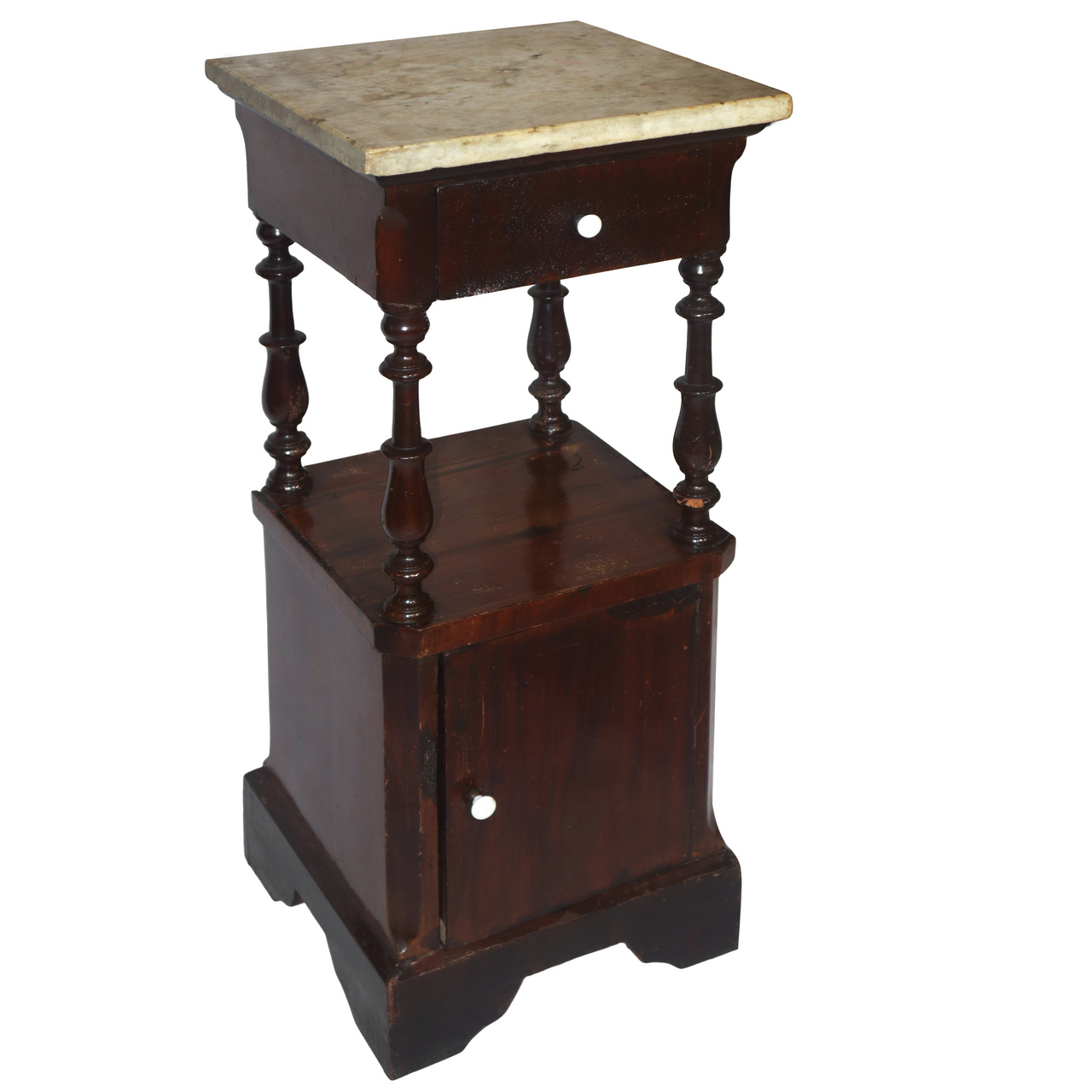 Comodino con marmo al piano con colonne tornite al sottopiano e sportello alla base , 19° secolo h cm 89,5X37X36