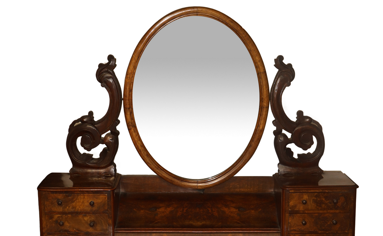 Mobile toeletta con specchiera in radica di noce , 19° secolo