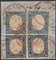 Frammento recante 2 coppie bene marginate del 20 cent cobalto grigio di gradazione leggermente diverse - Milano DC rosso d'effetto - Avanzo + ED - (15Cb)