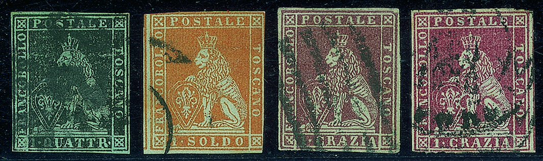 Antichi Stati Italiani - Toscana - 1851/1852 - Lotto di 9 valoriDella prima emissione escluso il 2 soldi con la crazia ripetuta in colore diverso - il 60 crazie molto fresco di colore con cert. Enzo Diena