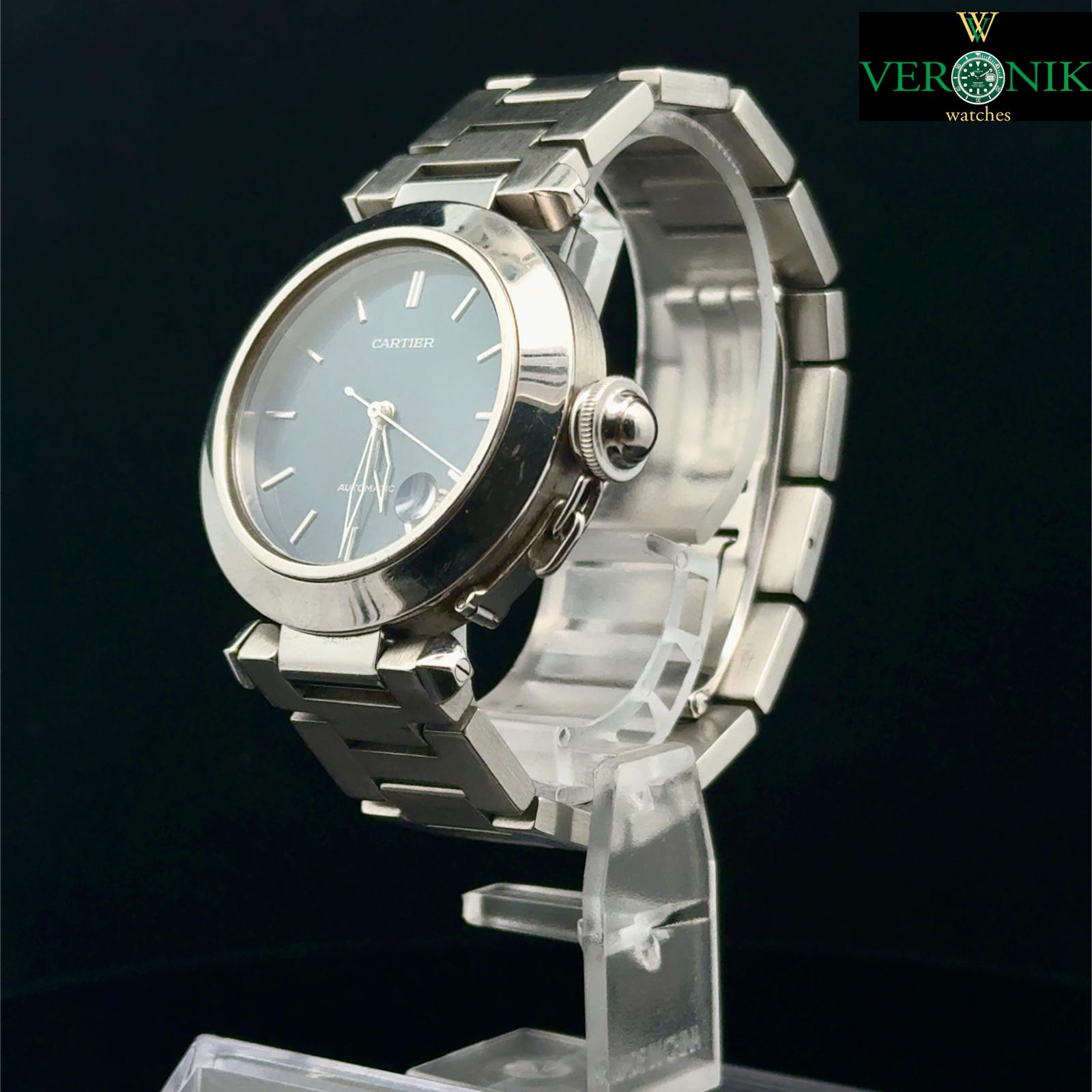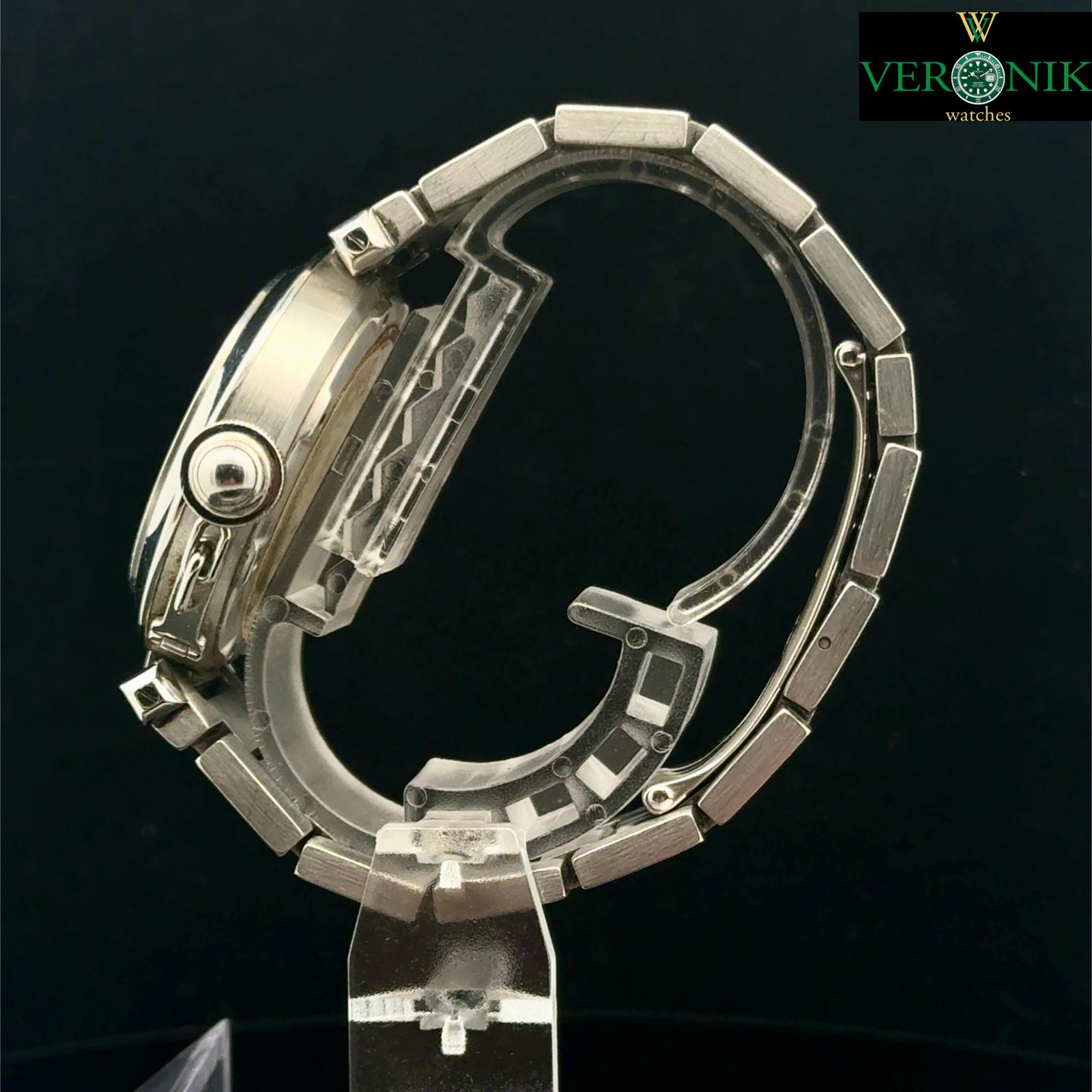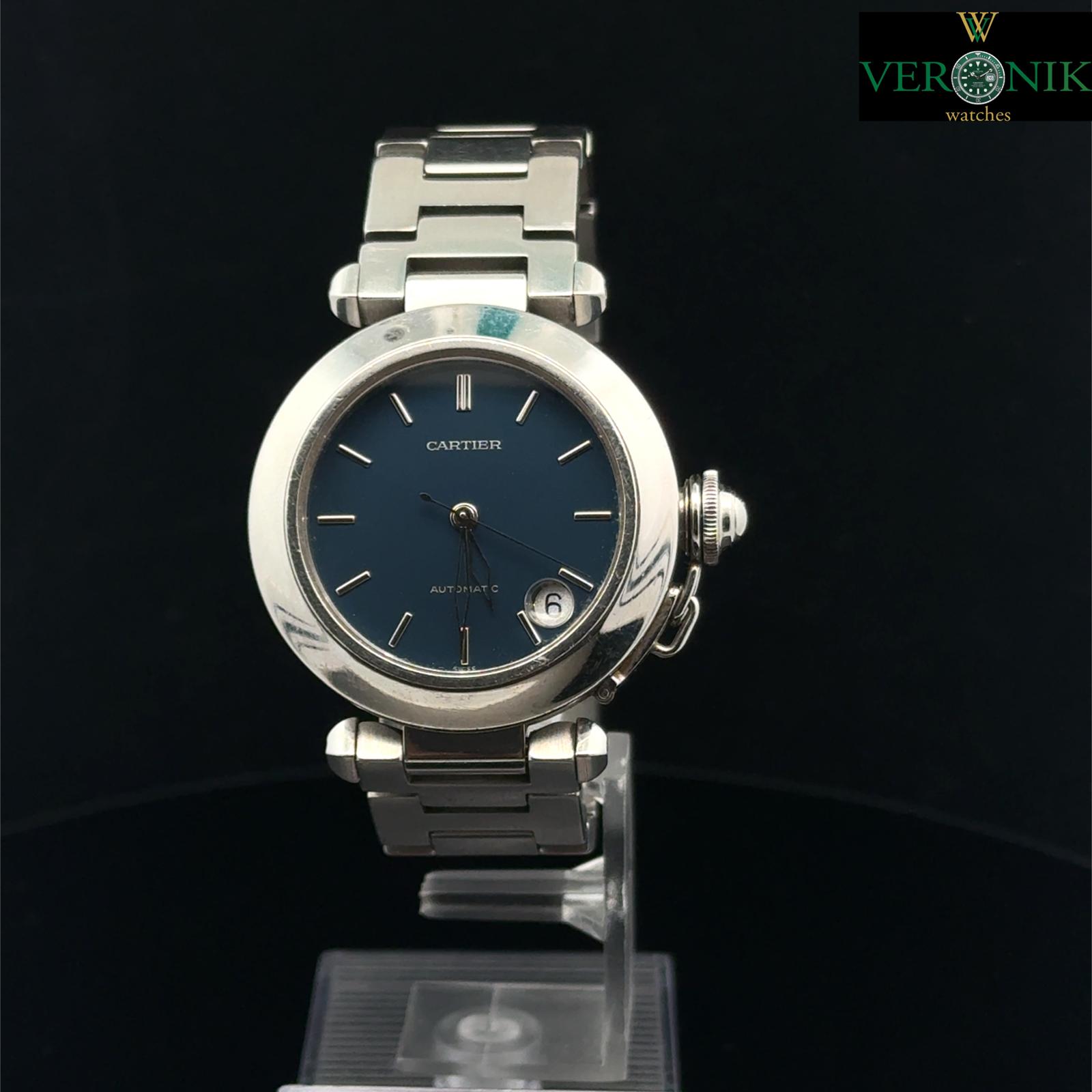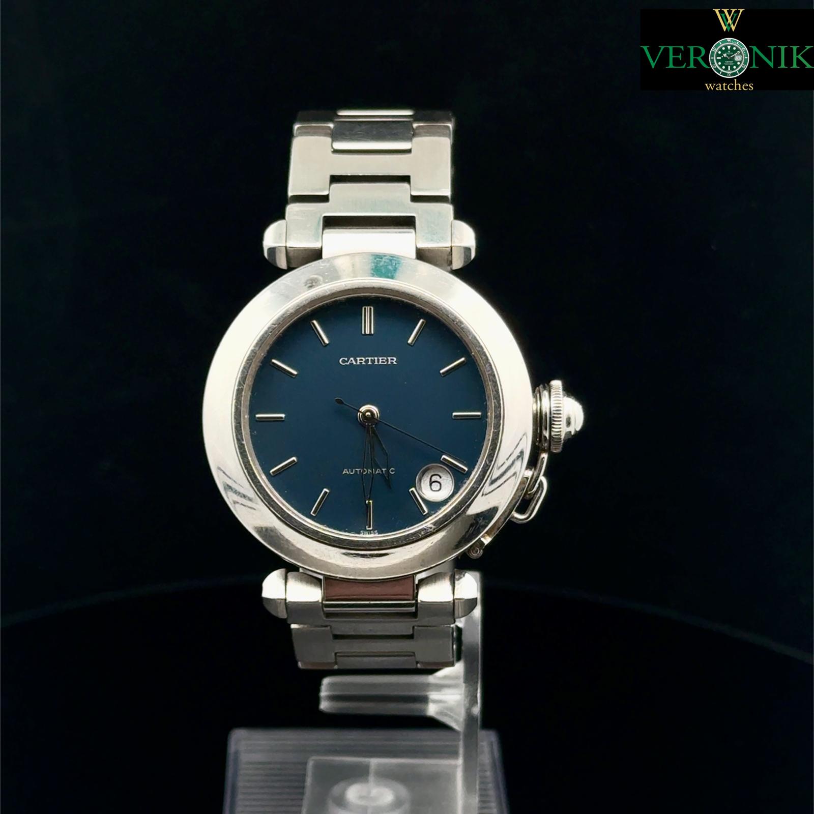 Marca Cartier Modello (Orologio) Pasha C Numero di referenza 2324 Carica Automatico Materiale della cassa Acciaio Materiale cinturino Acciaio Condizione Usato L'articolo presenta segni di usura lievi, come ad esempio graffi leggeri, ma non percepibili al tatto. Corredo No box, no documenti, garanzia del negozio di un anno Carica Automatico Cassa Materiale della cassa Acciaio Diametro 35 mm Impermeabile 10 ATM Materiale lunetta Acciaio Vetro Vetro zaffiro Quadrante blu Materiale cinturino Acciaio Colore cinturino Acciaio Materiale chiusura Acciaio Funzioni Data - COMMISSIONE D’ASTA 25%