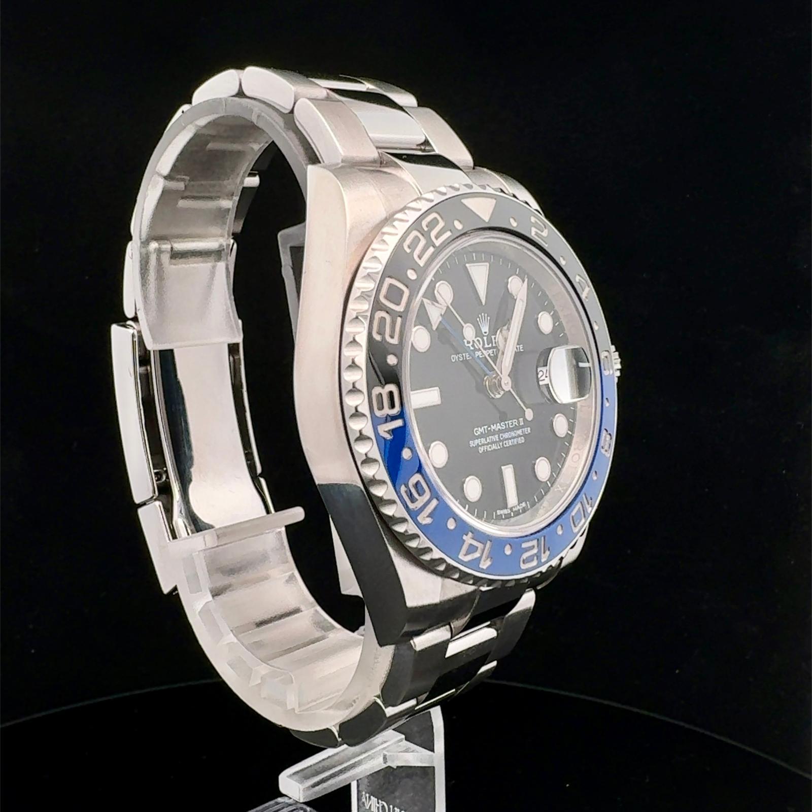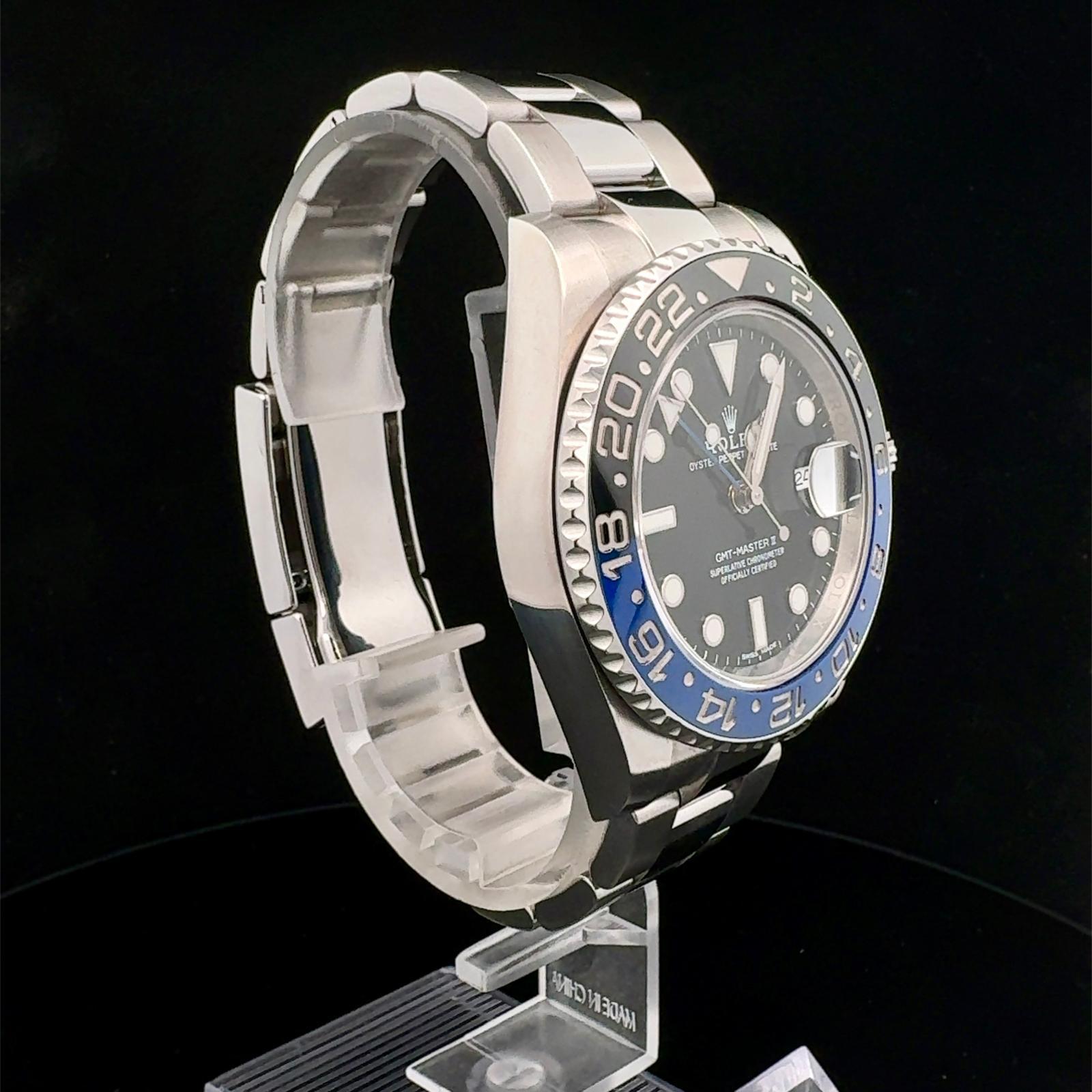 MARCA ROLEX Modello GMT-MASTER II Referenza 116710BLNR Carica Automatico Materiale della Cassa: Acciaio Materiale Cinturino Acciaio Anno di produzione 2013 Condizione Ottimo Corredo: Garanzia Originale Rolex, no box Diametro 40 MM Impermeabile: 10 ATM Materiale lunetta Ceramica Vetro Zaffiro Quadrante Nero - COMMISSIONE D’ASTA 25%