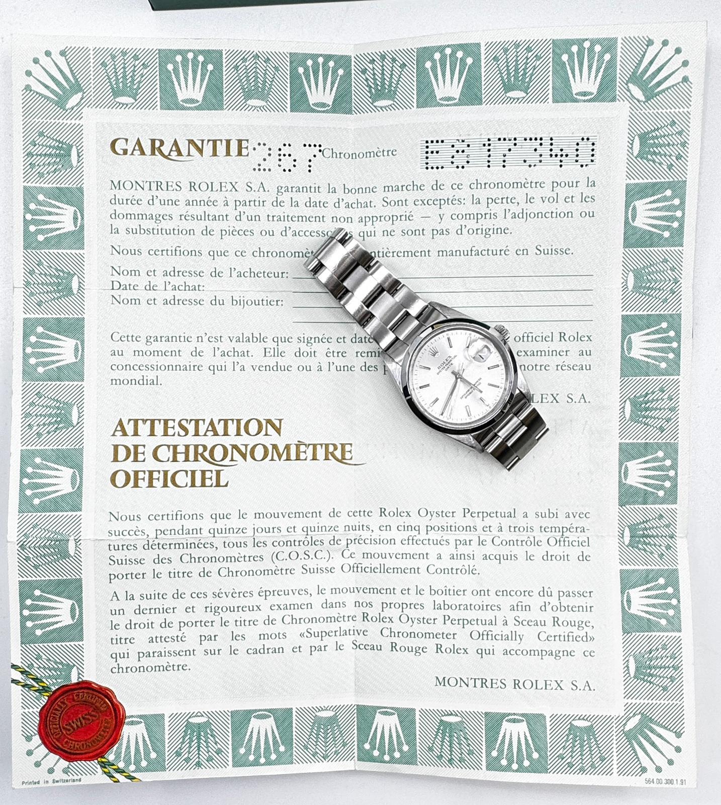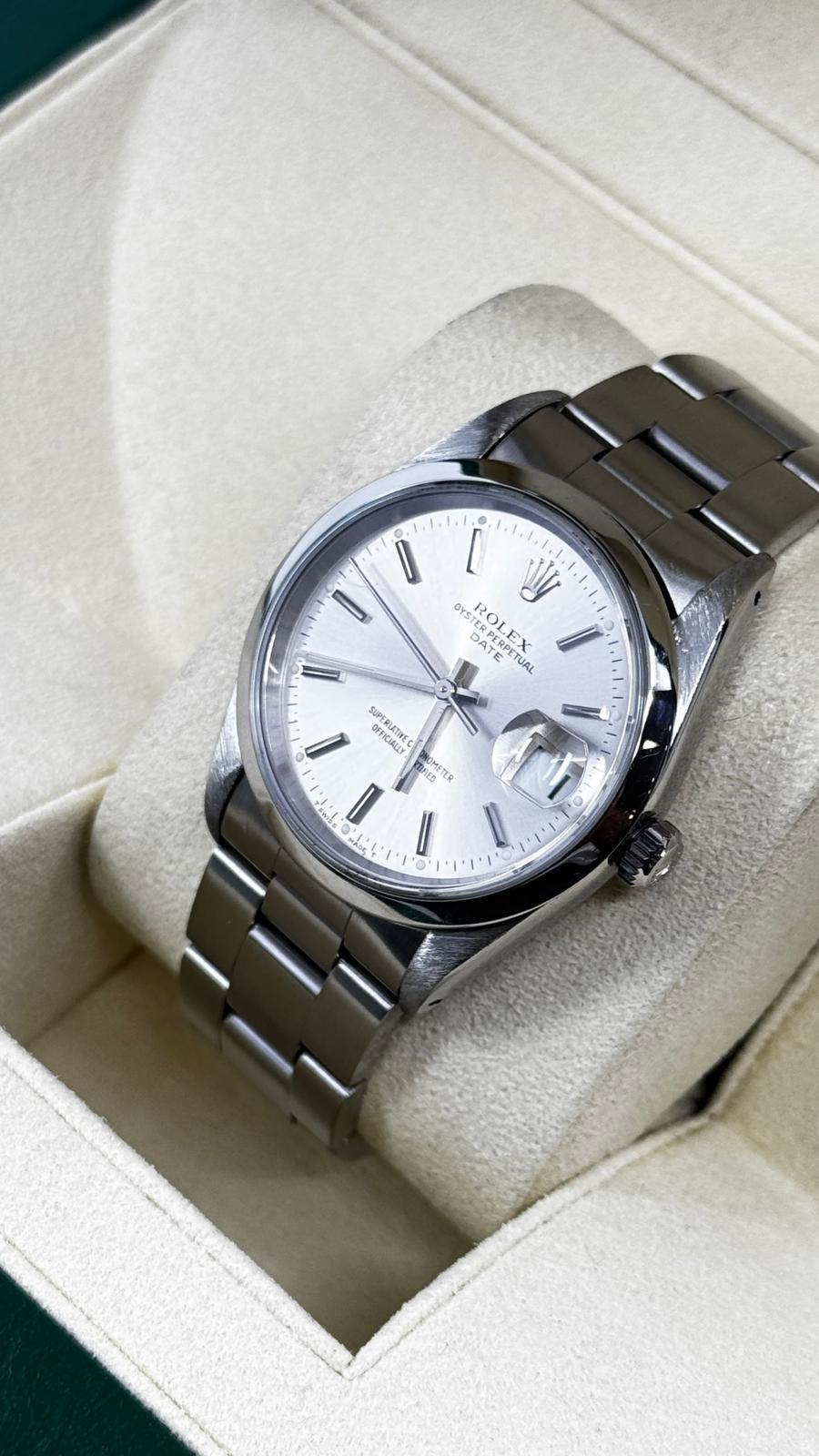 Marca Rolex Modello (Orologio) Oyster Perpetual Date Numero di referenza 15200 Materiale della cassa Acciaio Condizione Corredo Senza scatola originale, con documenti originali Un anno di garanzia del negozio Carica Automatico Cassa Materiale della cassa Acciaio Diametro 34 mm Vetro zaffiro Cinturino Materiale cinturino Acciaio Colore cinturino Acciaio - COMMISSIONE D’ASTA 25%