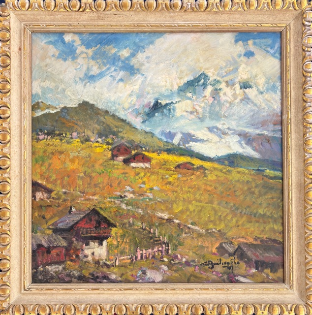 Cesare Bentivoglio Genova 1868 – 1952 Paesaggio montano Olio su tela cm 70x70 firmato in basso a dx