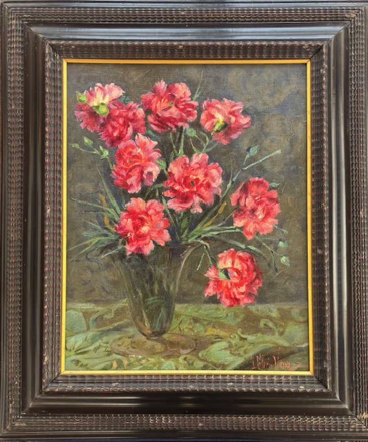 Ida Celeri Viena Milano 1877 – 1944 Vaso di garofani Olio su cartone cm 50x40 firmato in basso a dx