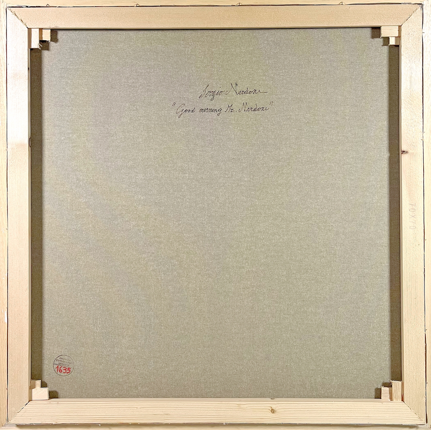 SERGIO NARDONI, 70 X 70 cm, ”Good Morning mr. Nardoni" olio su tela, titolo firma e numero di archiviazione a retro. Opera registrata presso l'archivio ufficiale Nardoni al n° 1635. Autentica dell'artista e certificato di autenticità F.lli Orler su fotografia
