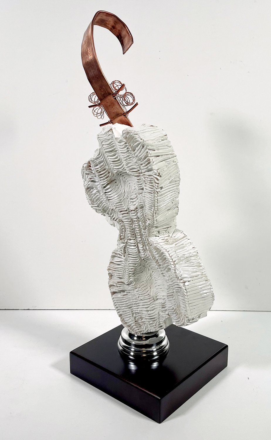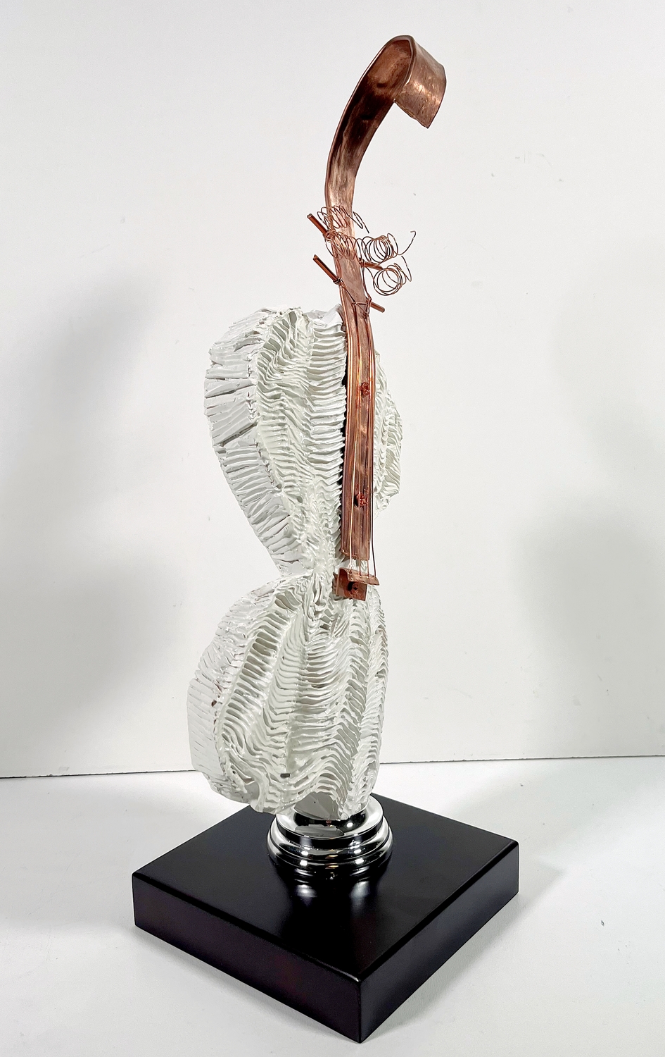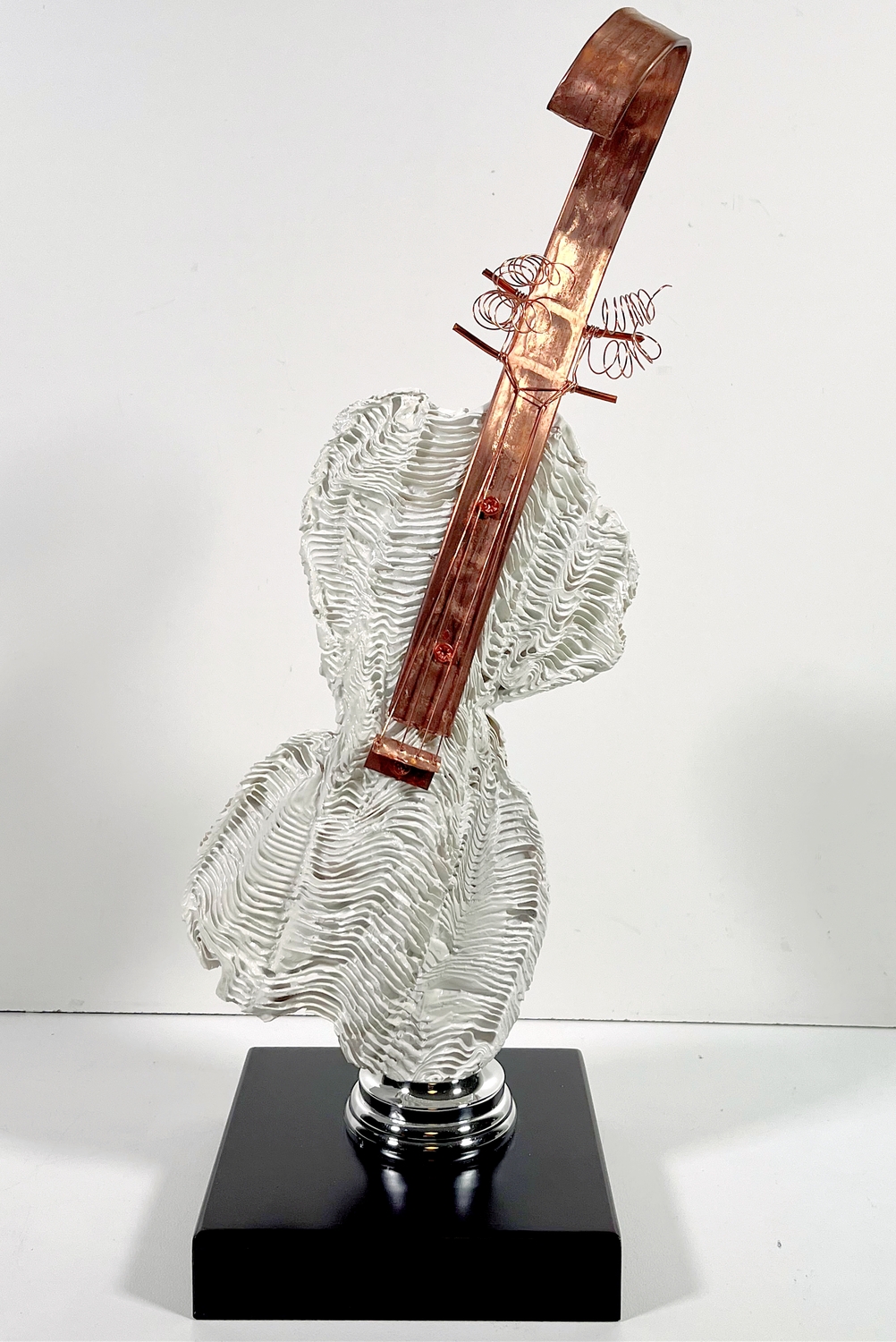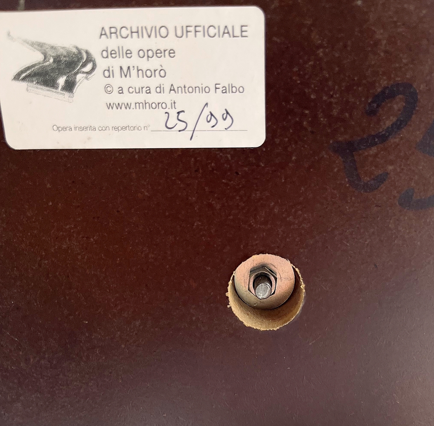 M’HORO’, h 43 x 16 x 15 cm, Multiplo: scultura in resina epossidica patinata in monocromia bianca. L’artista ha realizzato e innestato, su ciascun violino, il manico in rame, le corde e il ponticello.Ogni esemplare è registrato nell’archivio ufficiale degli “original multiples”Firma e numerazione incisa sul manicoNumerata a mano in alto e sotto la basaTiratura 99 numeri arabi + 25 numeri romani + 15 P.d’A.Opera registrata presso l’archivio delle opere multiple di M’HORO’ come riportato sul certificato di autenticità.