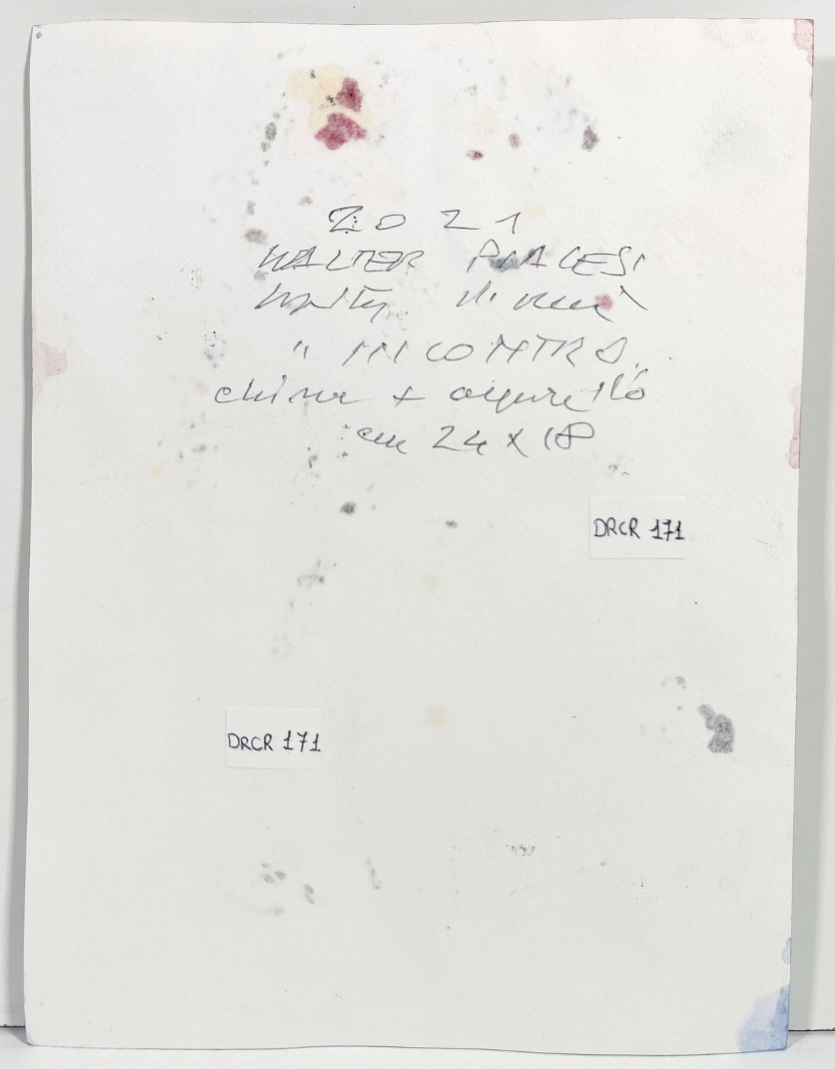 WALTER PIACESI, 24 X 18 cm, ”Incontro”, china e acquarello su carta, anno 2021, titolo anno tecnica e firma a retro, certificato di provenienza della galleria Allegrini
