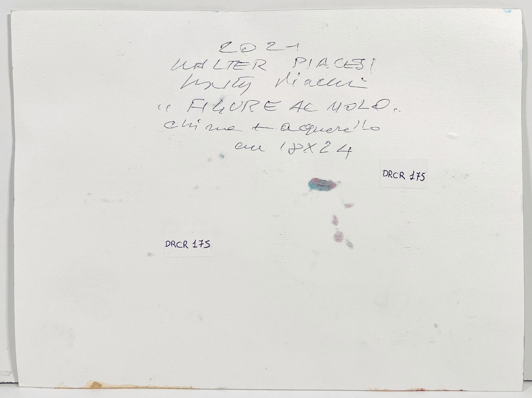 WALTER PIACESI, 24 X 18 cm, ”Figure al molo", china e acquarello su carta, anno 2021, titolo anno tecnica e firma a retro, certificato di provenienza della galleria Allegrini