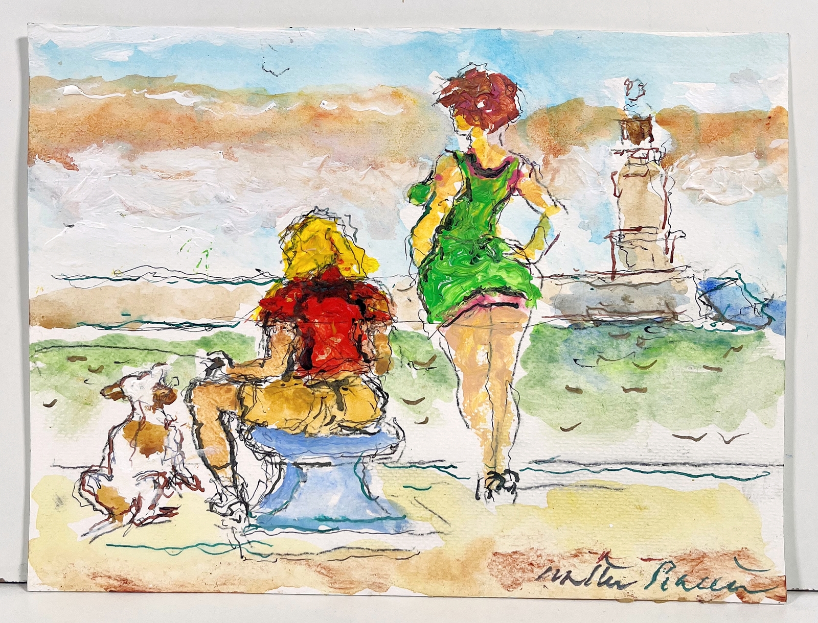 WALTER PIACESI, 24 X 18 cm, ”Figure al molo", china e acquarello su carta,...