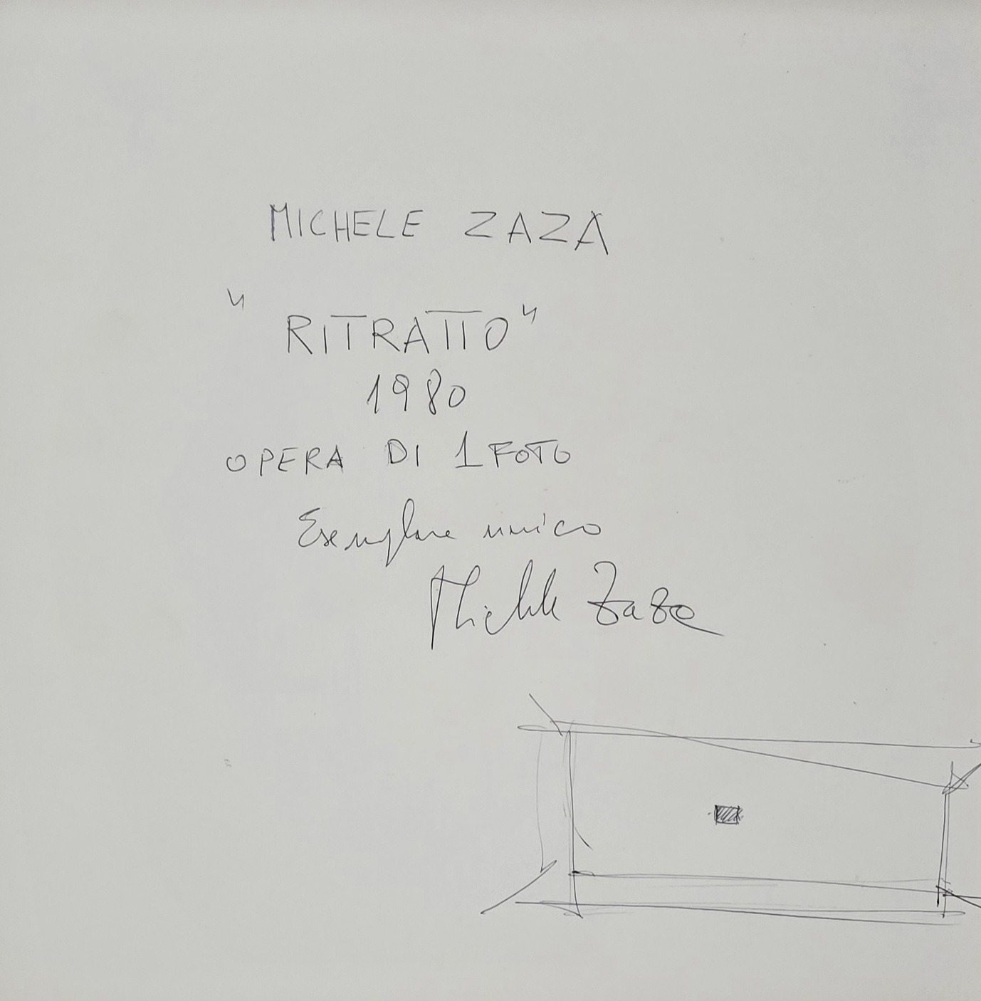 MICHELE ZAZA, 40 x 40 cm, ritratto 1980, fotografia a colori riportata su pannello, firma titolo e anno al retro, dichiarazione di autenticità dell’artista su foto.