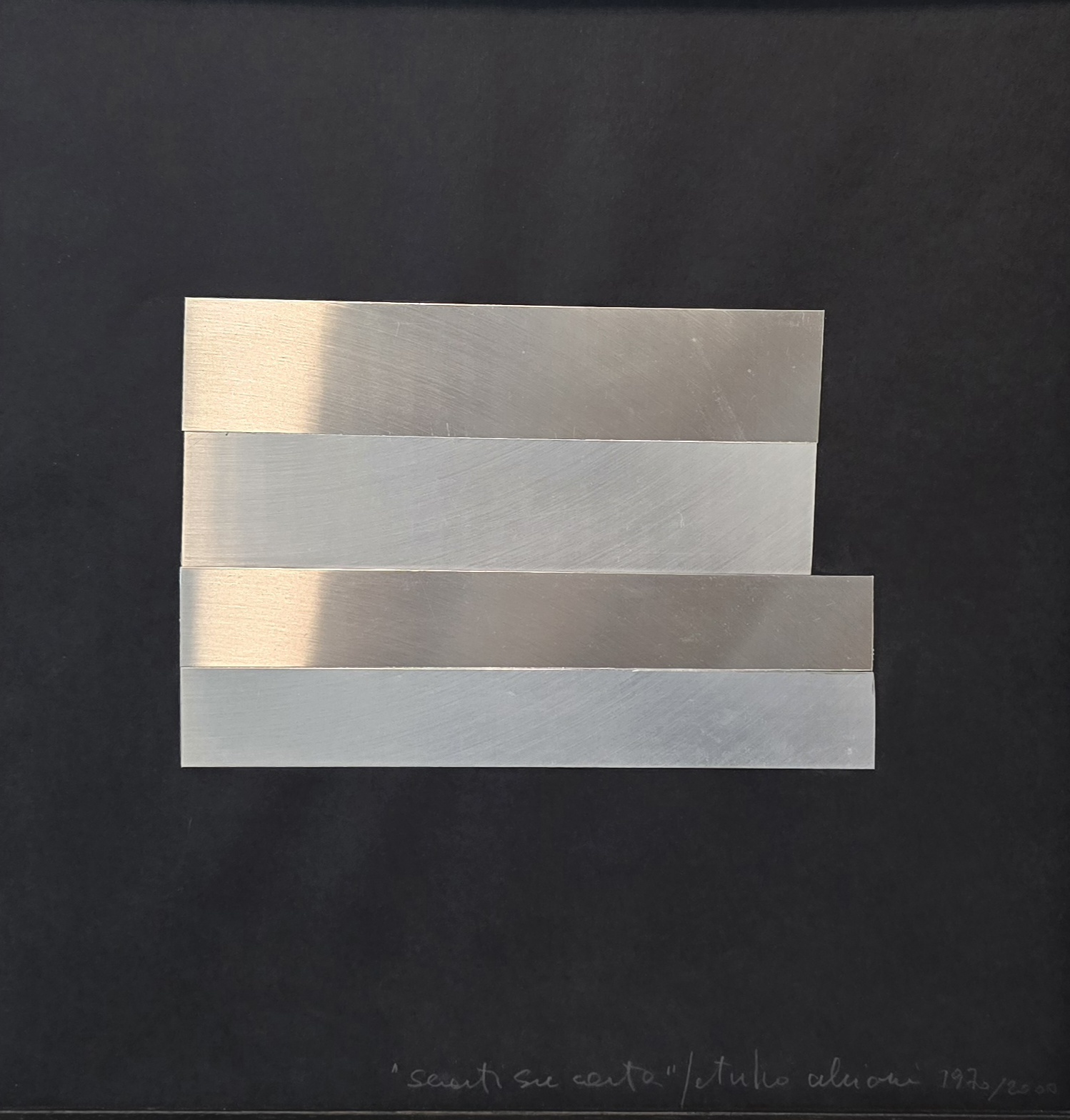 GETULIO ALVIANI, 35 X 35 cm, Alluminio su cartone del 1970/2000, Firmato e datato in basso a destra e al retro.