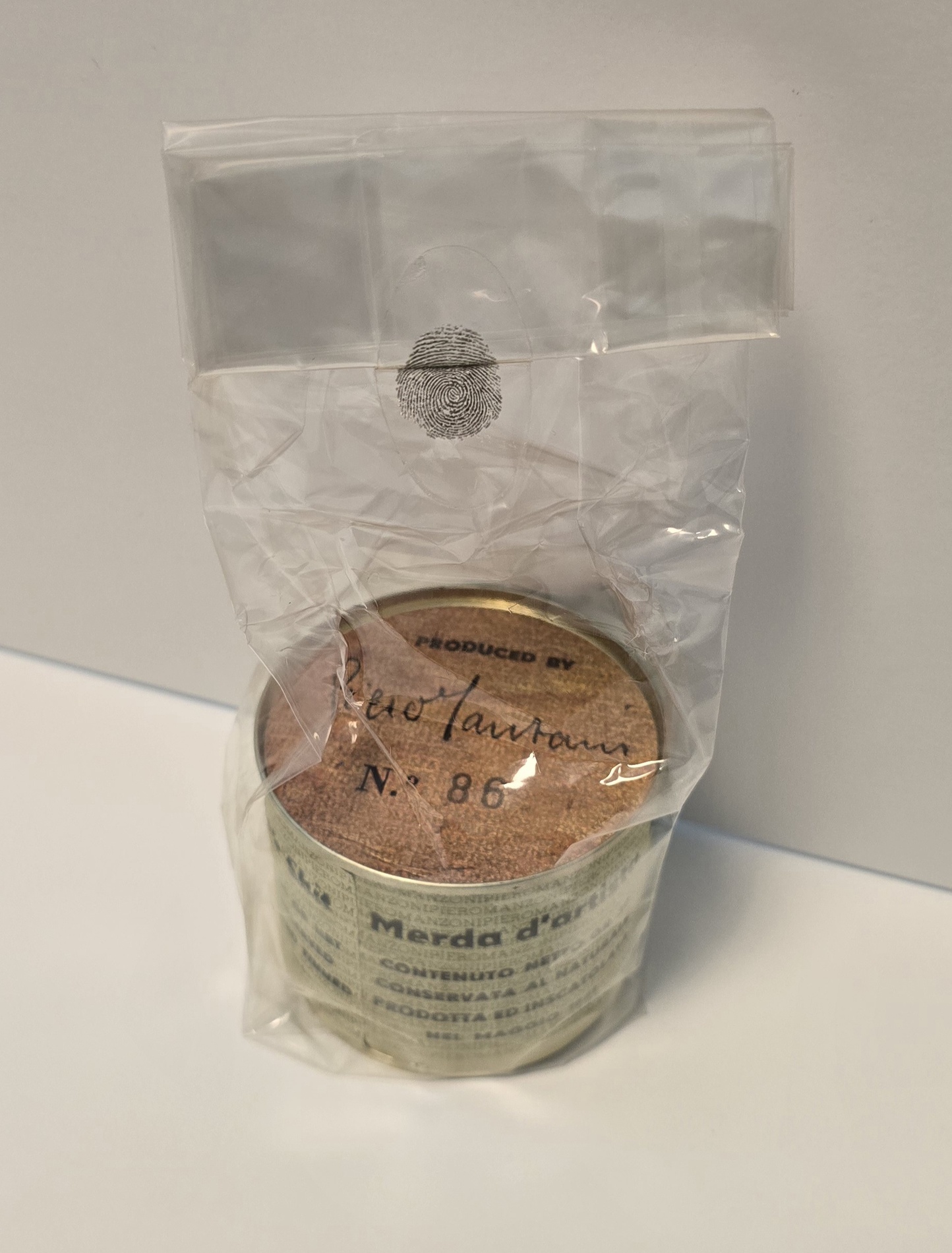 PIERO MANZONI, 1933-1963, Scatoletta di latta stampata 1961-2013, cm h 7,5 diam. 6,5: titolo Merda d’Artista ed. n° 86, 1961-2013, edizione Fondazione Piero Manzoni.