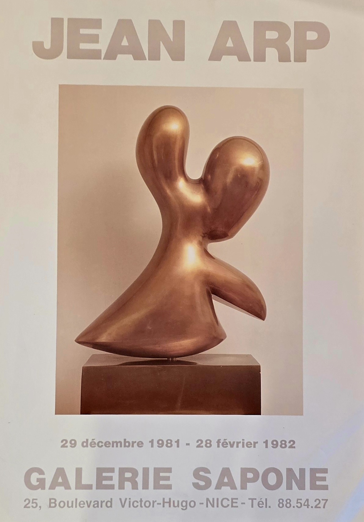 JEAN ARP, 63 X 44 cm, Manifesto litografico originale eseguito per la mostra dal 29 dicembre al 28 febbraio 1982 dalla Galleria Sapone Nizza.