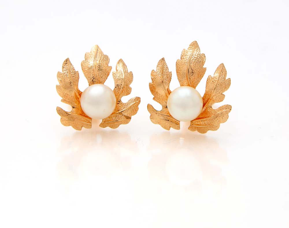 Weingrill, orecchini in oro e perle Oro giallo 750/000. Perle mm. 6. Chiusura solo clip. Peso complessivo gr. 4,80. cm 2 x 2