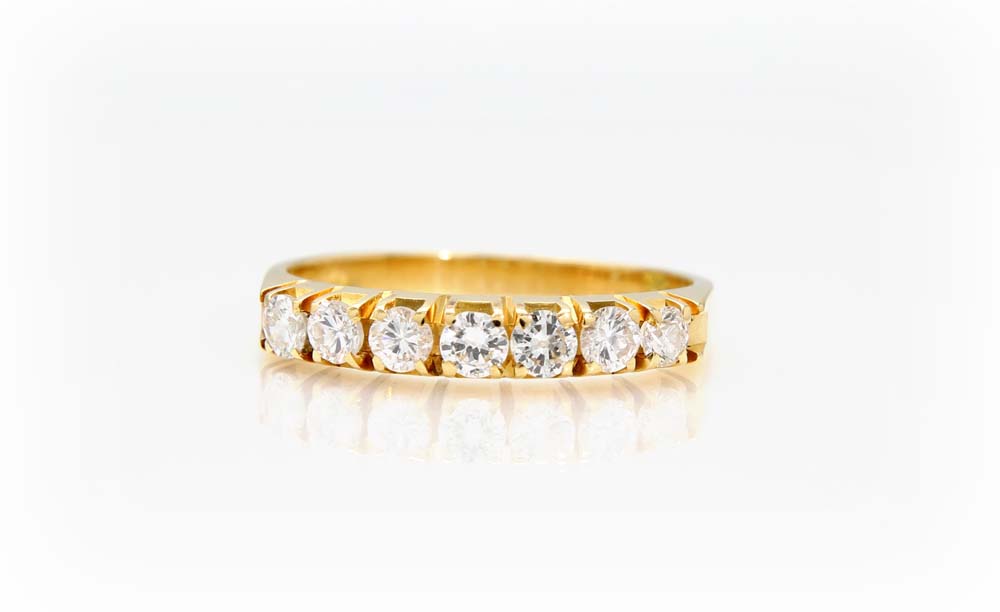 Riviera in oro e brillanti Oro giallo 750/000. Diamanti in taglio rotondo brillante ct. 0,40 ca.Peso complessivo gr. 2,30 Misura 11