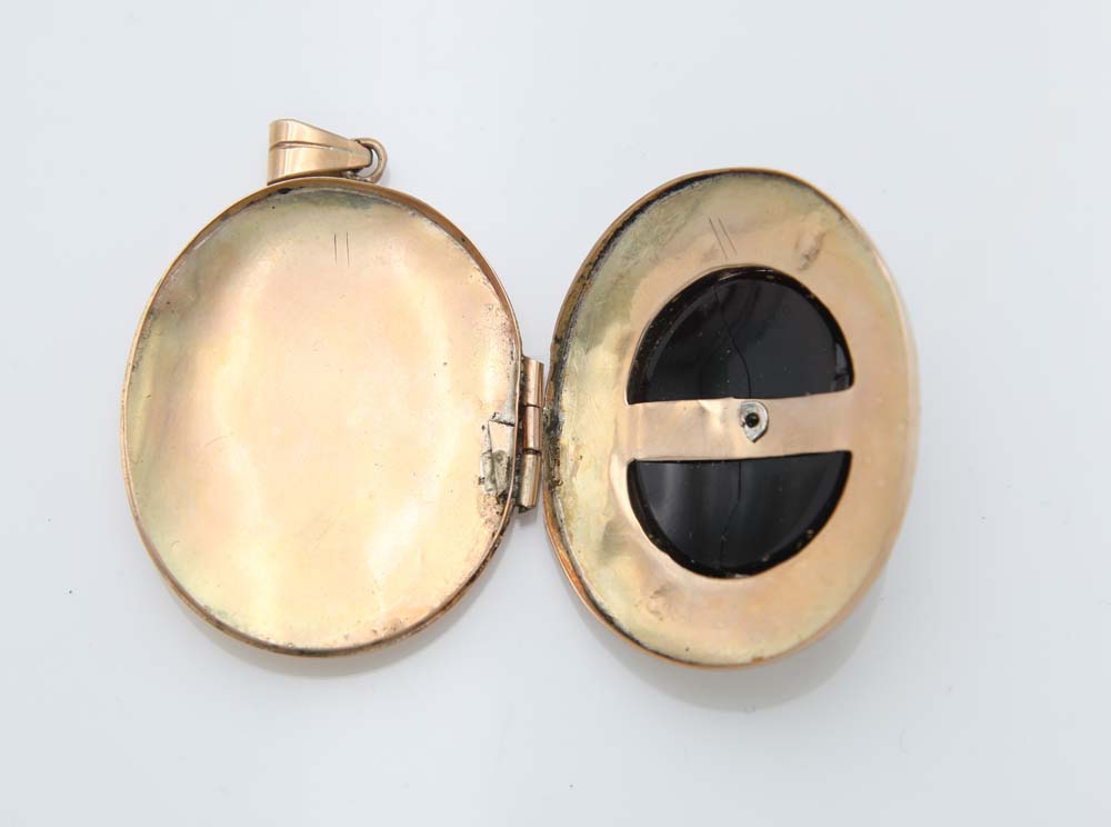 Pendente antico portaritratti in oro e onice Oro giallo 750/000. Peso...