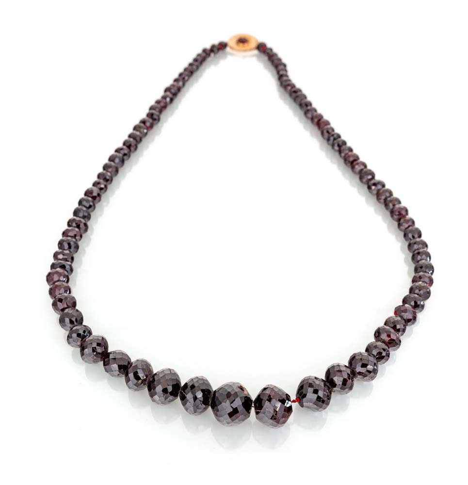 Lotto 16 | Collana ad un filo in oro e granati. Oro a basso titolo. Granati in taglio...