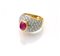 Anello a fascia in oro, rubino e brillanti Oro giallo e bianco 750/000....