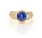 Anello in oro, zaffiro, brillanti e baguettes Oro giallo 750/000. Zaffiro in taglio ovale ct. 2. Peso complessivo gr. 6,50 Misura 15