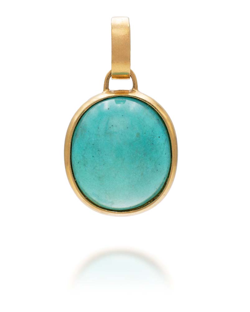 Lotto 71 | Pendente in oro e turchese Oro giallo 750/000. Peso complessivo gr. 9 cm 3