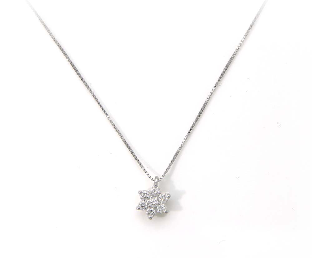 Pendente a fiore in oro e brillanti Oro bianco 750/000. Peso complessivo gr. 1,80 Lunghezza cm 42