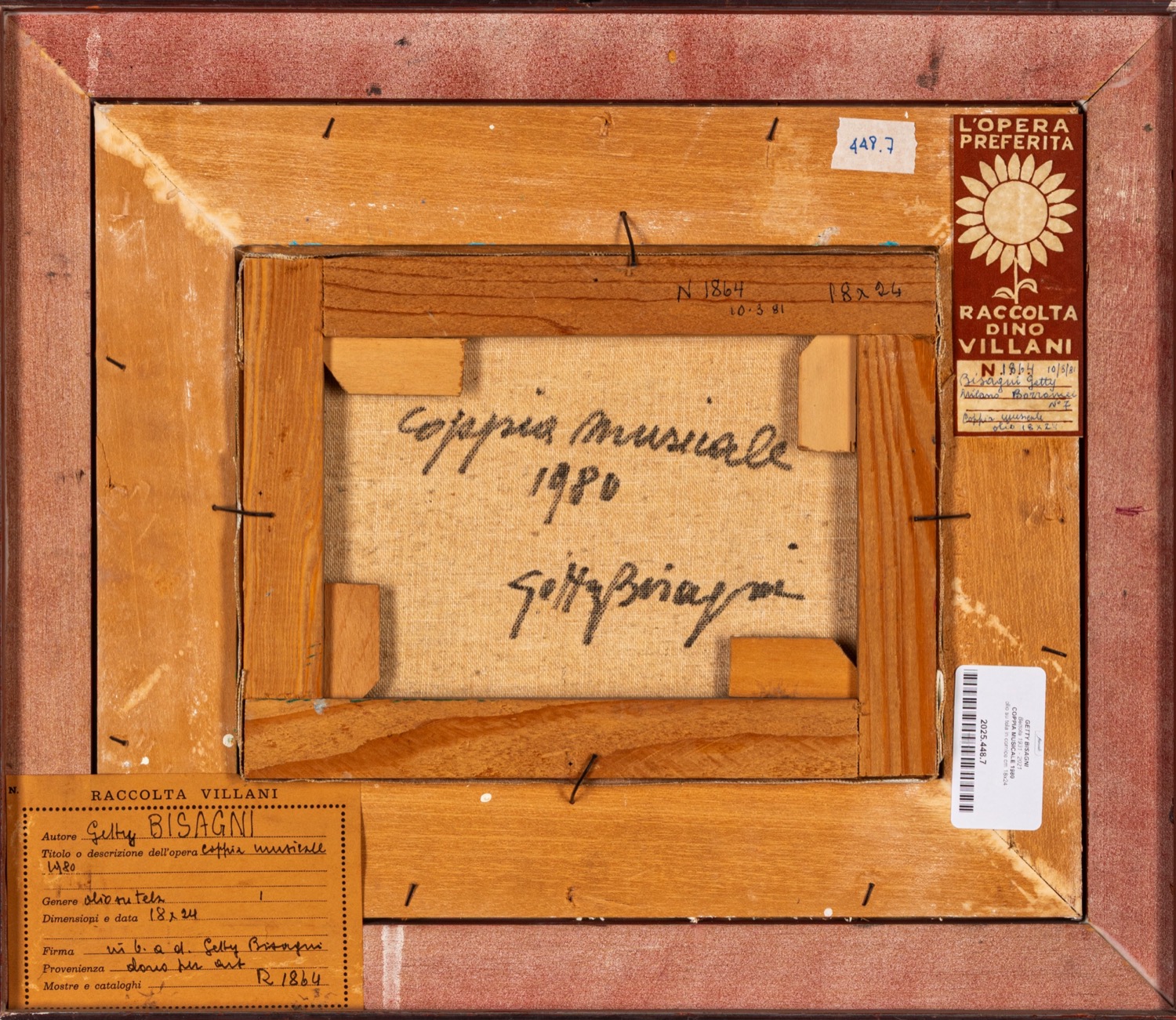 Provenienza: "Raccolta Villani" etichetta al retro con dettagli dell'opera.