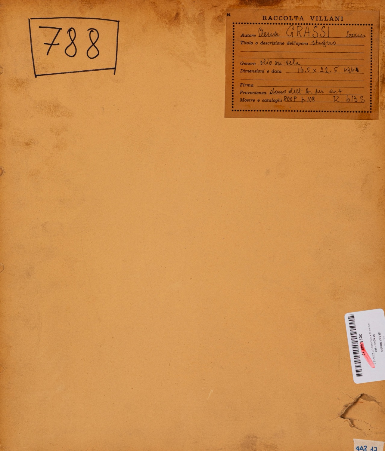 Provenienza: "Raccolta Villani" etichetta al retro con dettagli dell'opera.