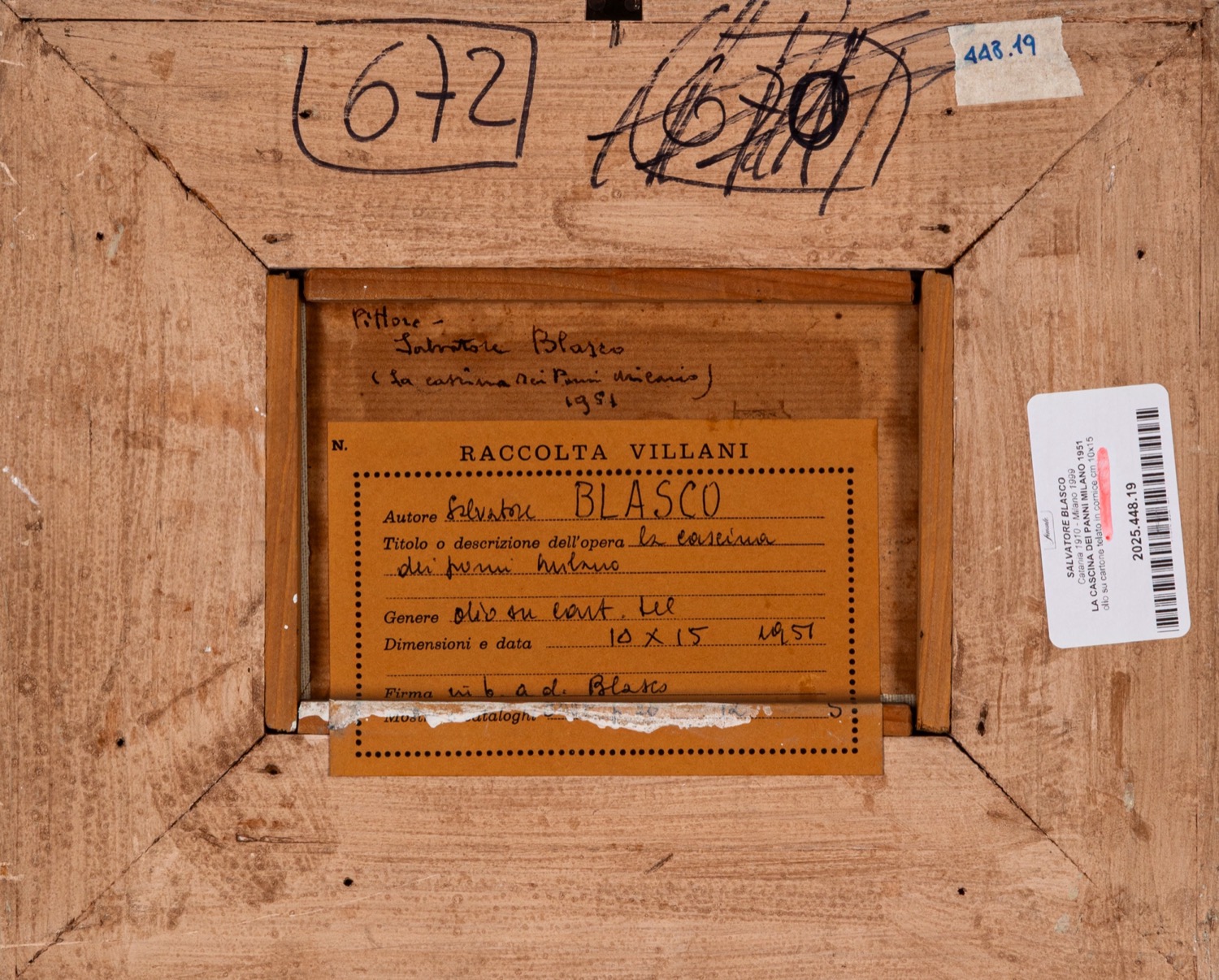 Provenienza: "Raccolta Villani" etichetta al retro con dettagli dell'opera.