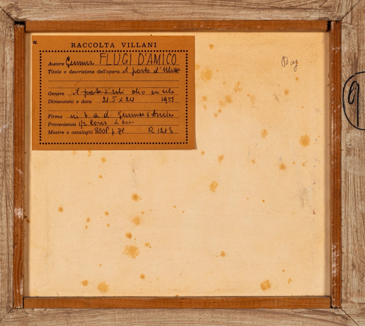 Provenienza: "Raccolta Villani" etichetta al retro con dettagli dell'opera.