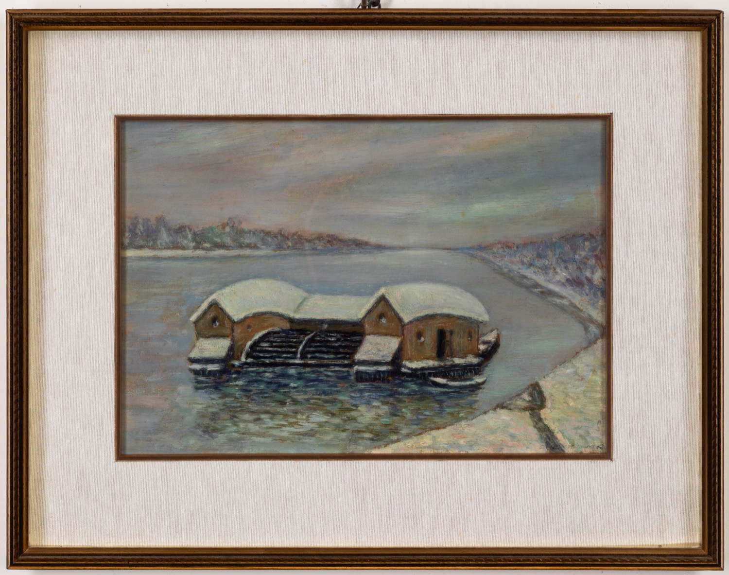 Dino Villani (Nogara 1898 - Milano 1989) - Mulino sul Pò con la neve, 1973