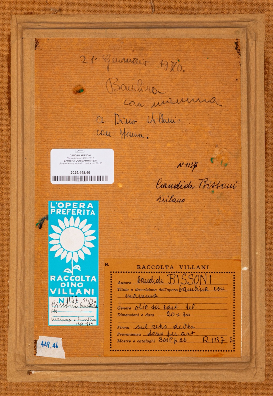 Provenienza: "Raccolta Villani" etichetta al retro con dettagli dell'opera.