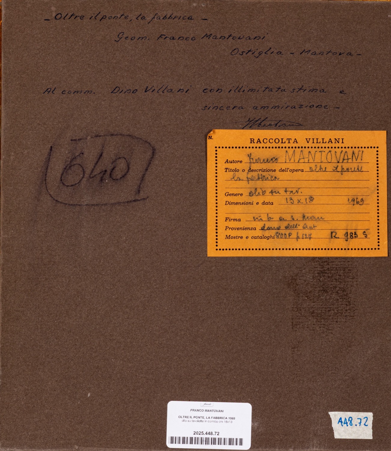 Provenienza: "Raccolta Villani" etichetta al retro con dettagli dell'opera.