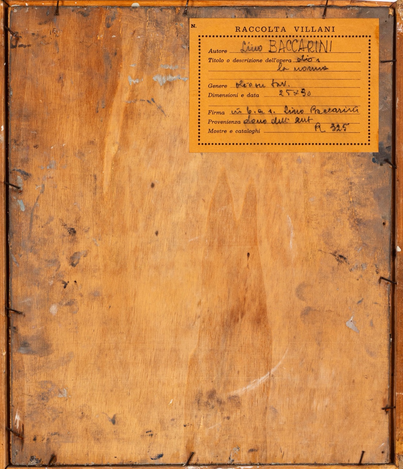 Provenienza: "Raccolta Villani" etichetta al retro con dettagli dell'opera.