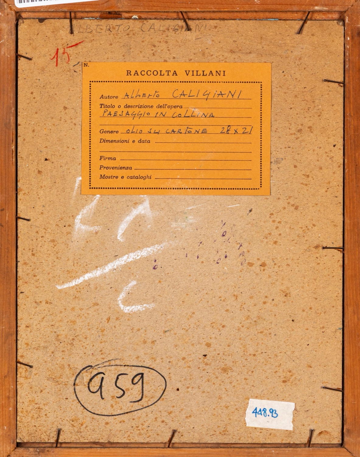Provenienza: "Raccolta Villani" etichetta al retro con dettagli dell'opera.